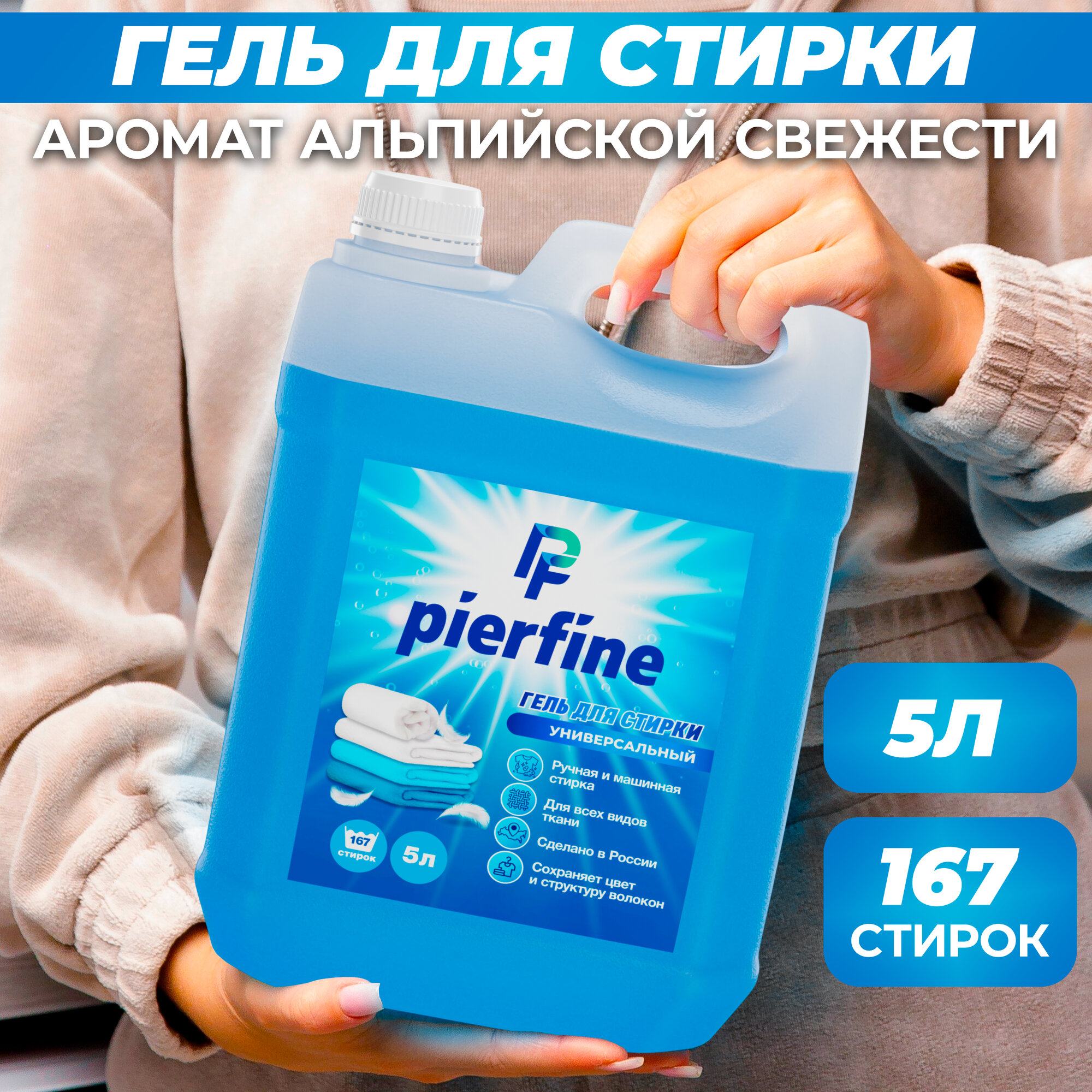 10 цен на Гель для стирки белья, 5 л, удаляет пятна, Альпийская свежесть Pierfine
