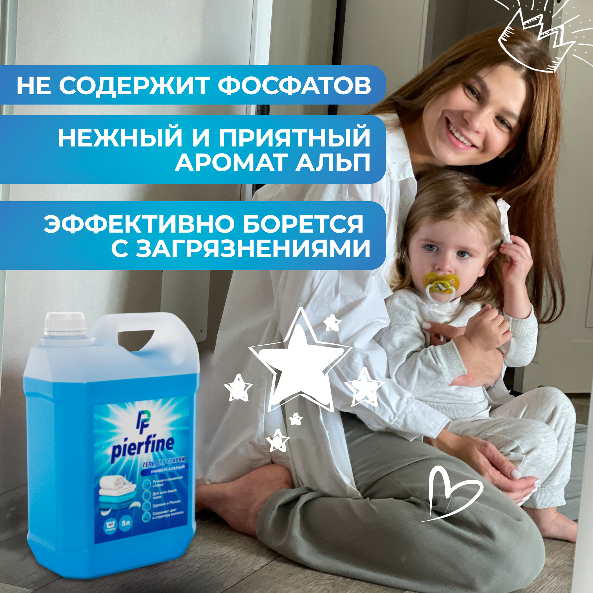 Гель для стирки белья, 5 л, удаляет пятна, Альпийская свежесть Pierfine информация: