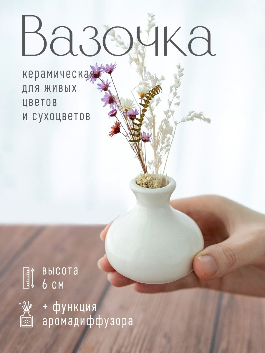 Маленькая декоративная керамическая ваза для сухоцветов и цветов Decologic молочная информация: