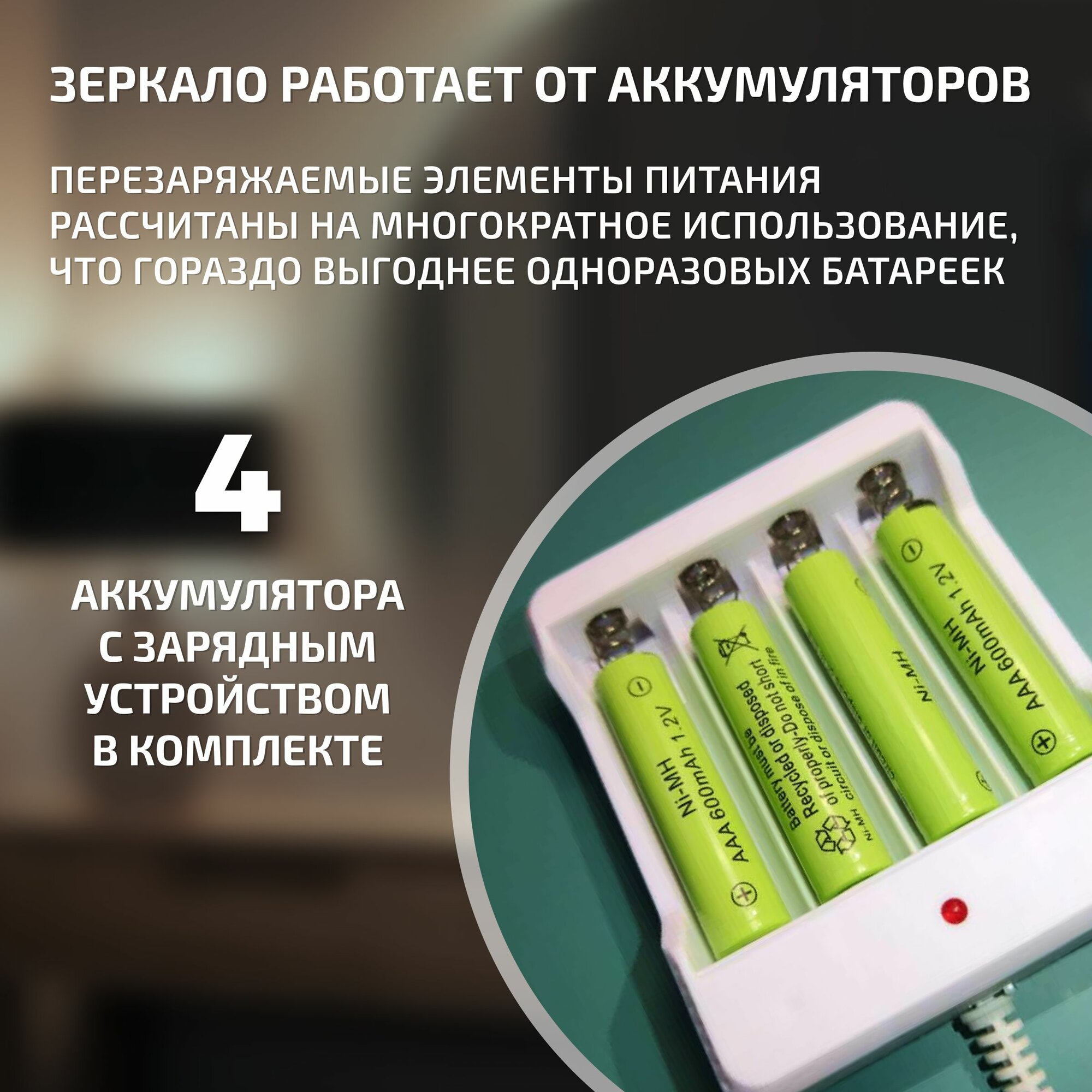 Отзывы на Зеркало настенное с подсветкой на аккумуляторе + зарядное устройство, круглое 70 см. Три режима подсветки