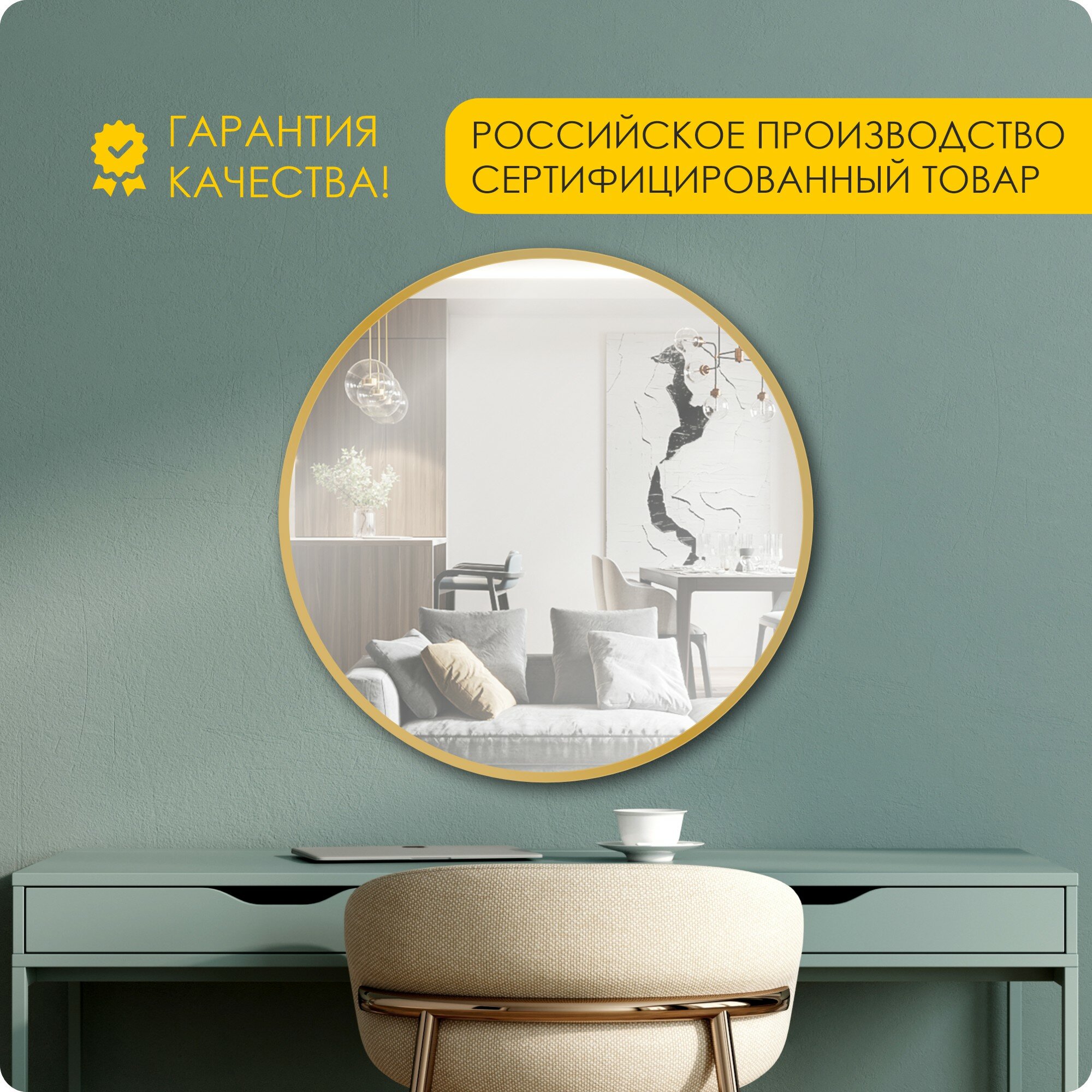 Зеркало настенное, зеркало в ванную круглое 90 х 90 см , золото информация: