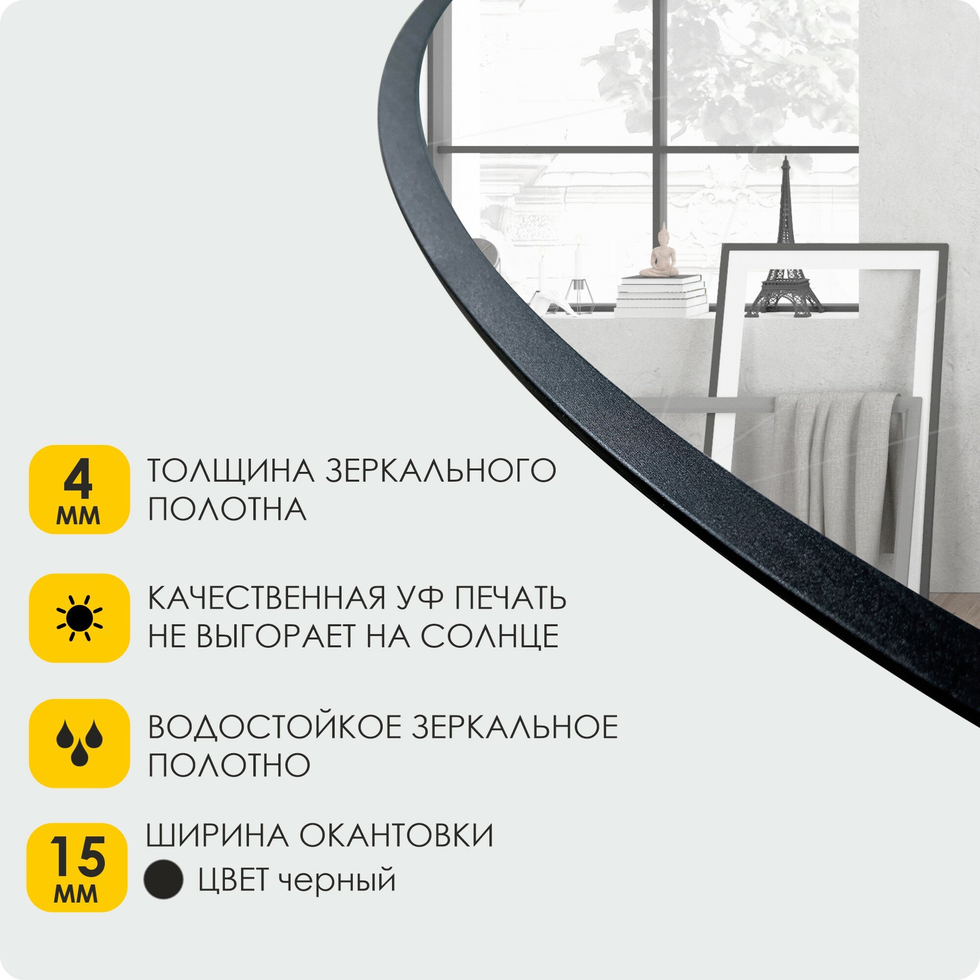 Зеркало настенное, зеркало в ванную круглое 90 х 90 см , черное информация: