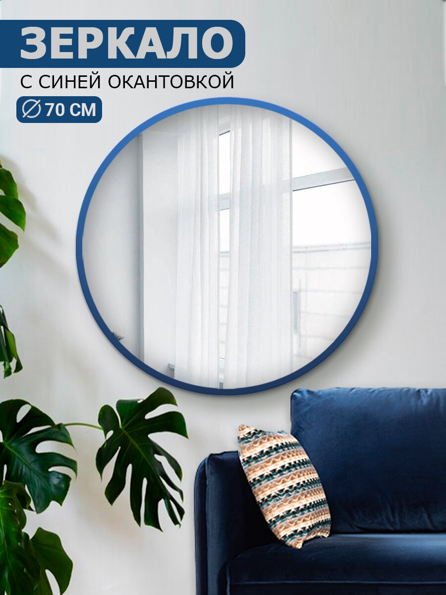 Зеркало настенное, зеркало в ванную круглое 70 х 70 см , синее информация: