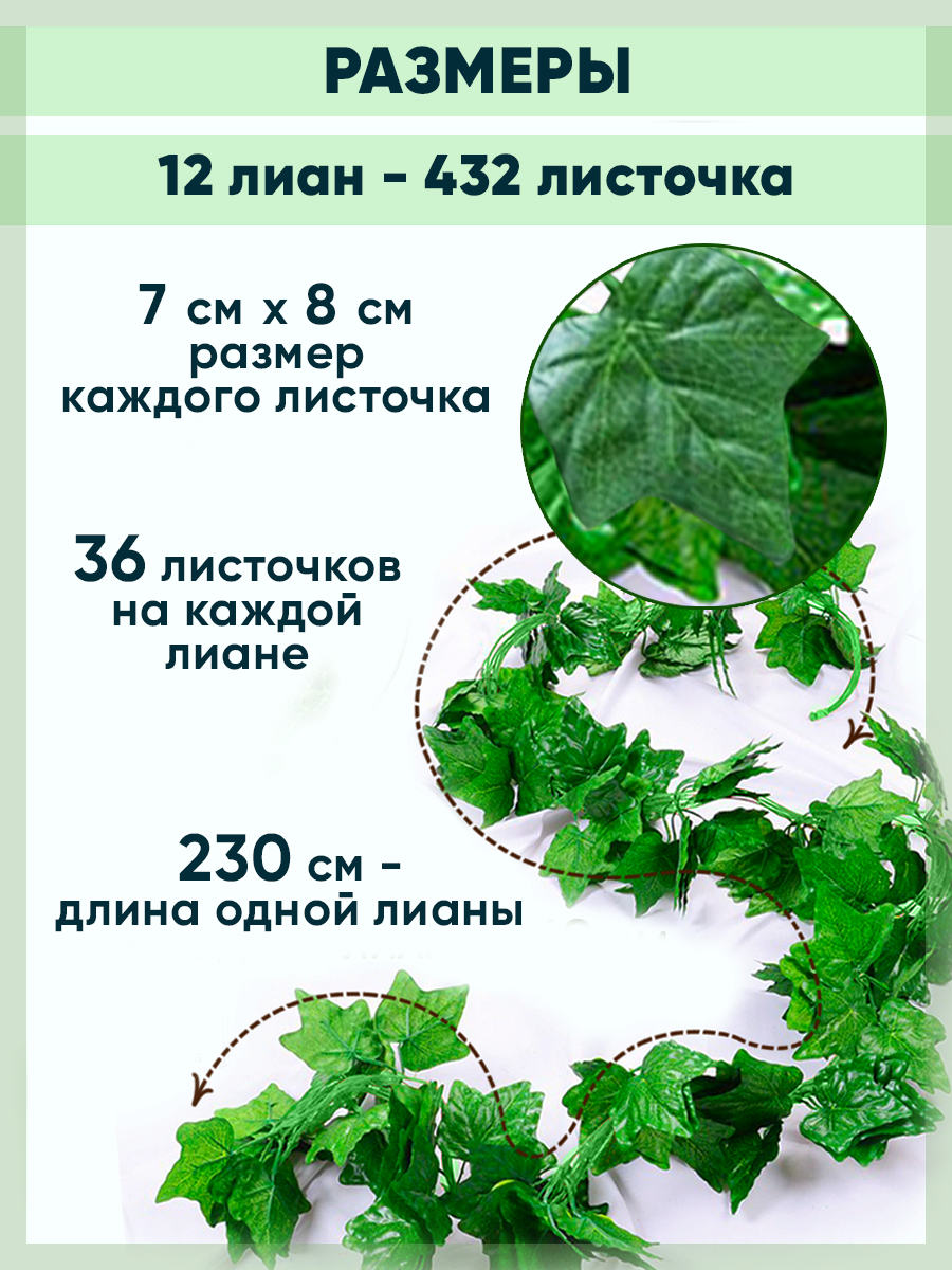 Лиана искусственная для декора плющ крупнолистный 12 штук информация: