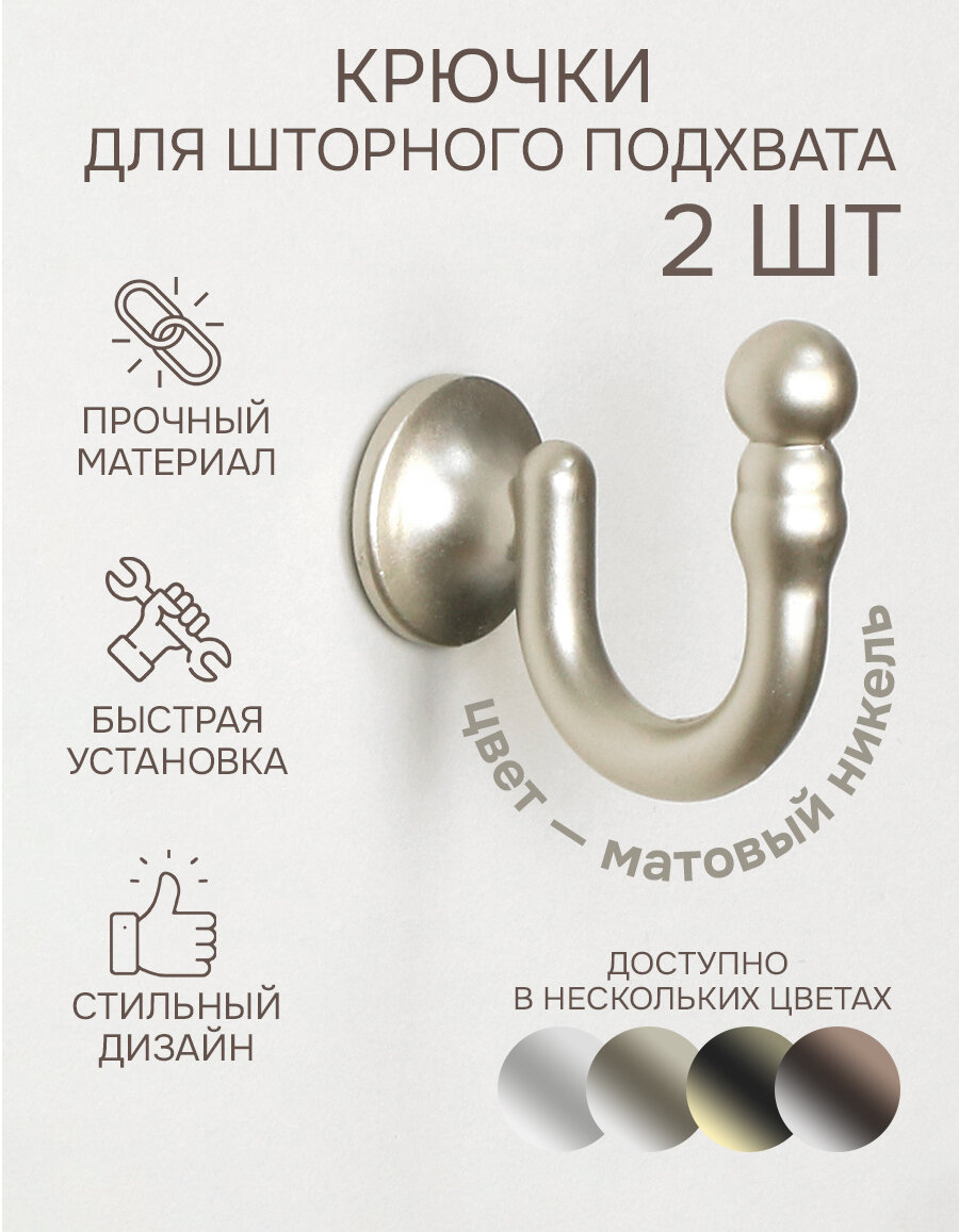 Крючок для шторного подхвата, "Эскар", Матовый никель, 2 шт. информация: