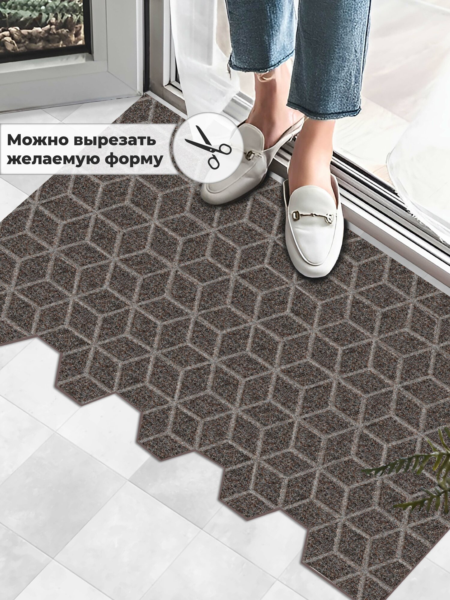 Коврик вырезной придверный SHAHINTEX практик Соты антискользящий влаговпитывающий 60х90 мокко информация: