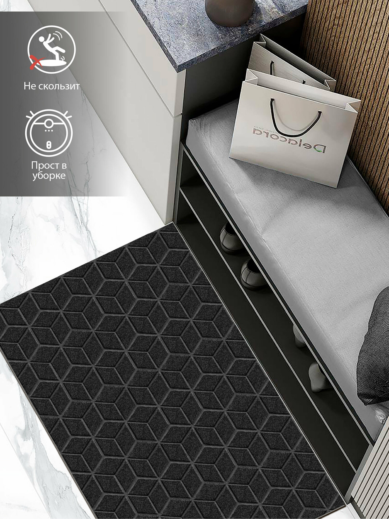 Отзывы на Коврик придверный вырезной SHAHINTEX практик Соты противоскользящий 60х90 черный гранит