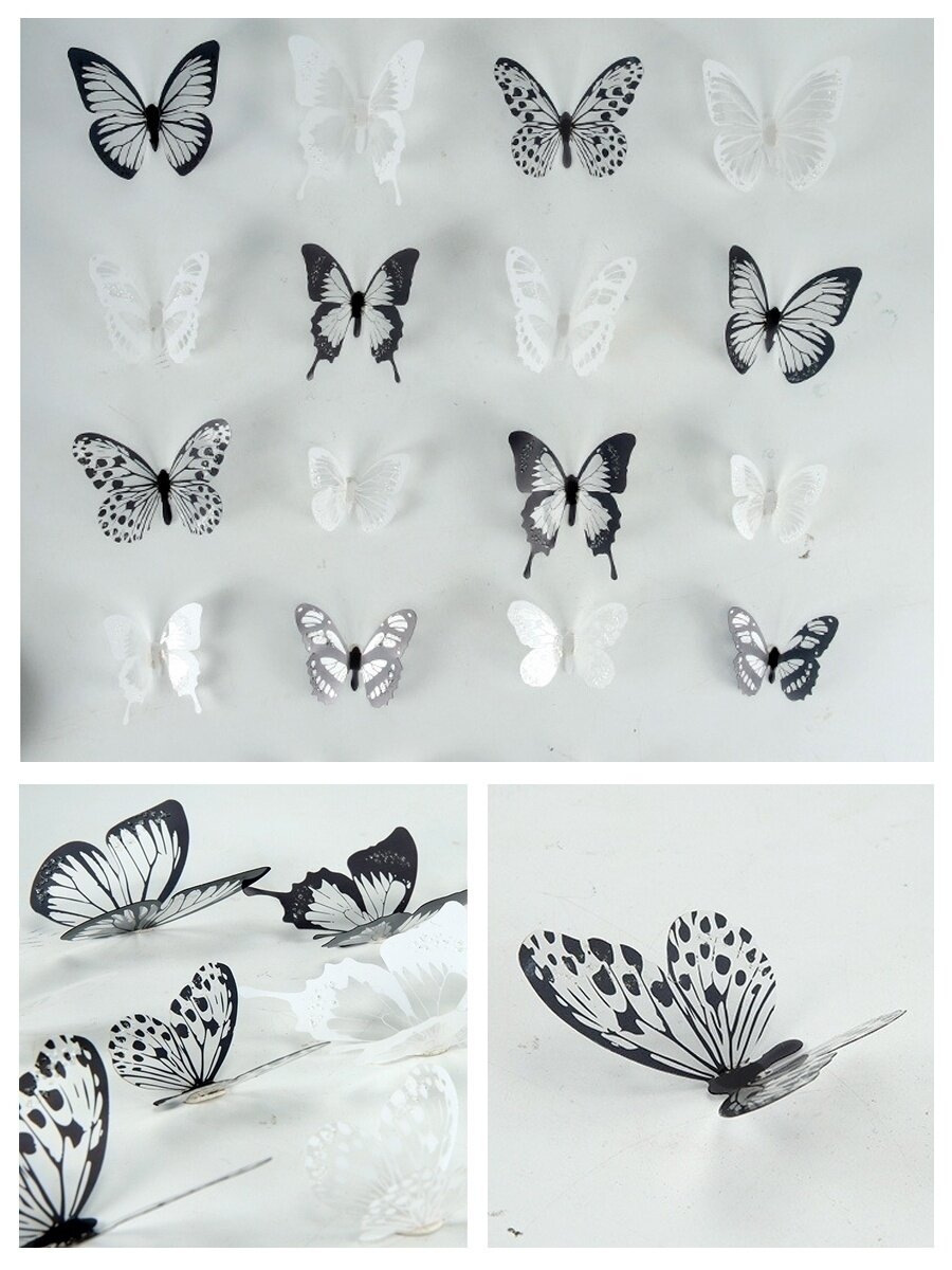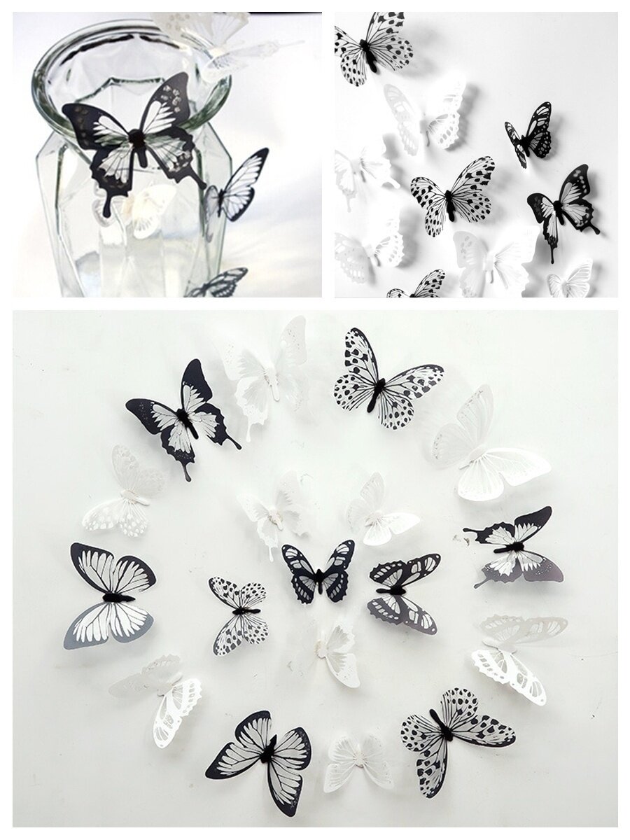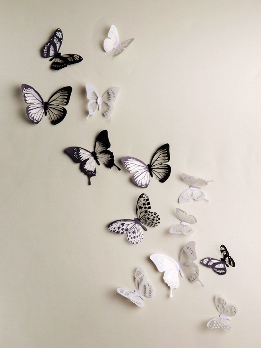Отзывы на Наклейки интерьерные 3D бабочки черно-белые для украшения стен от imaginart