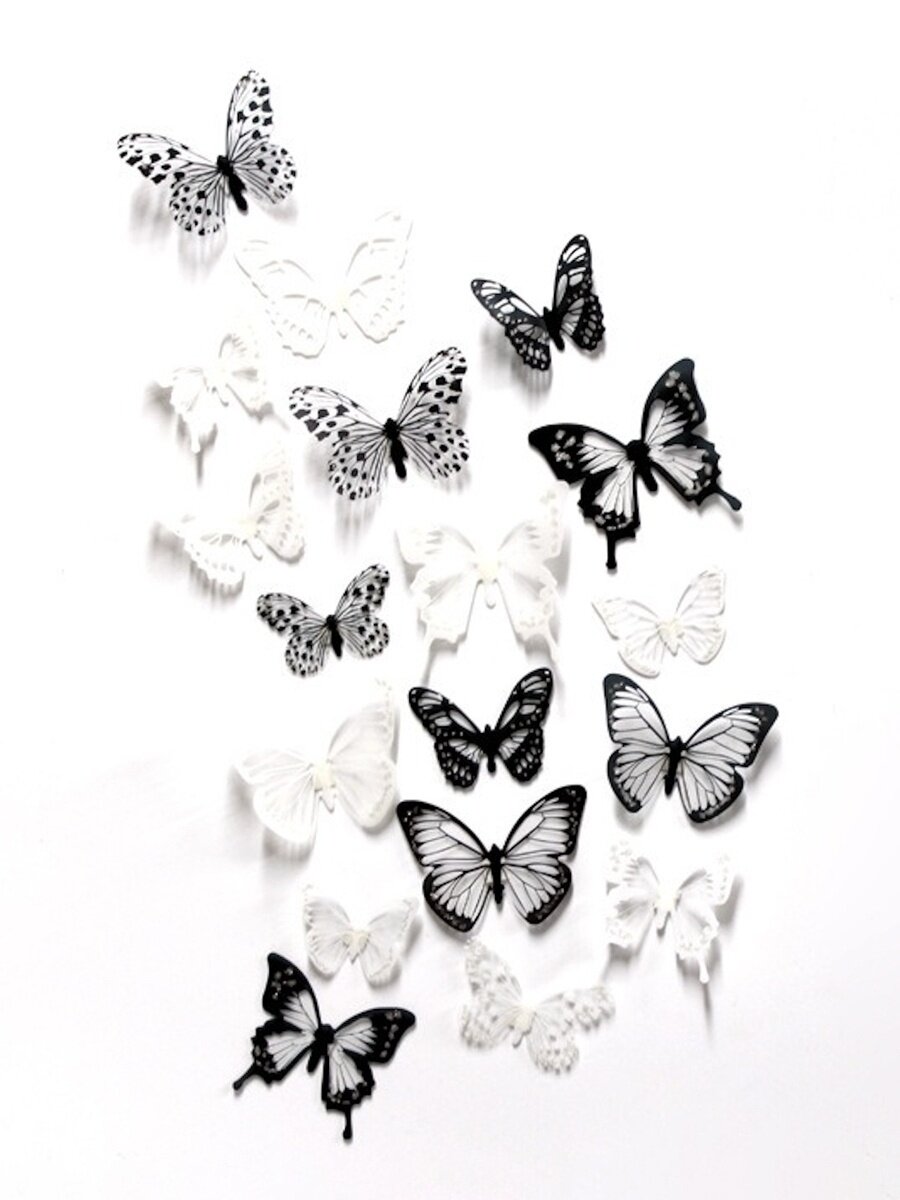 10 цен на Наклейки интерьерные 3D бабочки черно-белые для украшения стен от imaginart