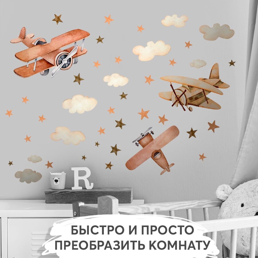 Отзывы на Декоративные интерьерные наклейки детские на стену в комнату - Самолеты, звезды, облака
