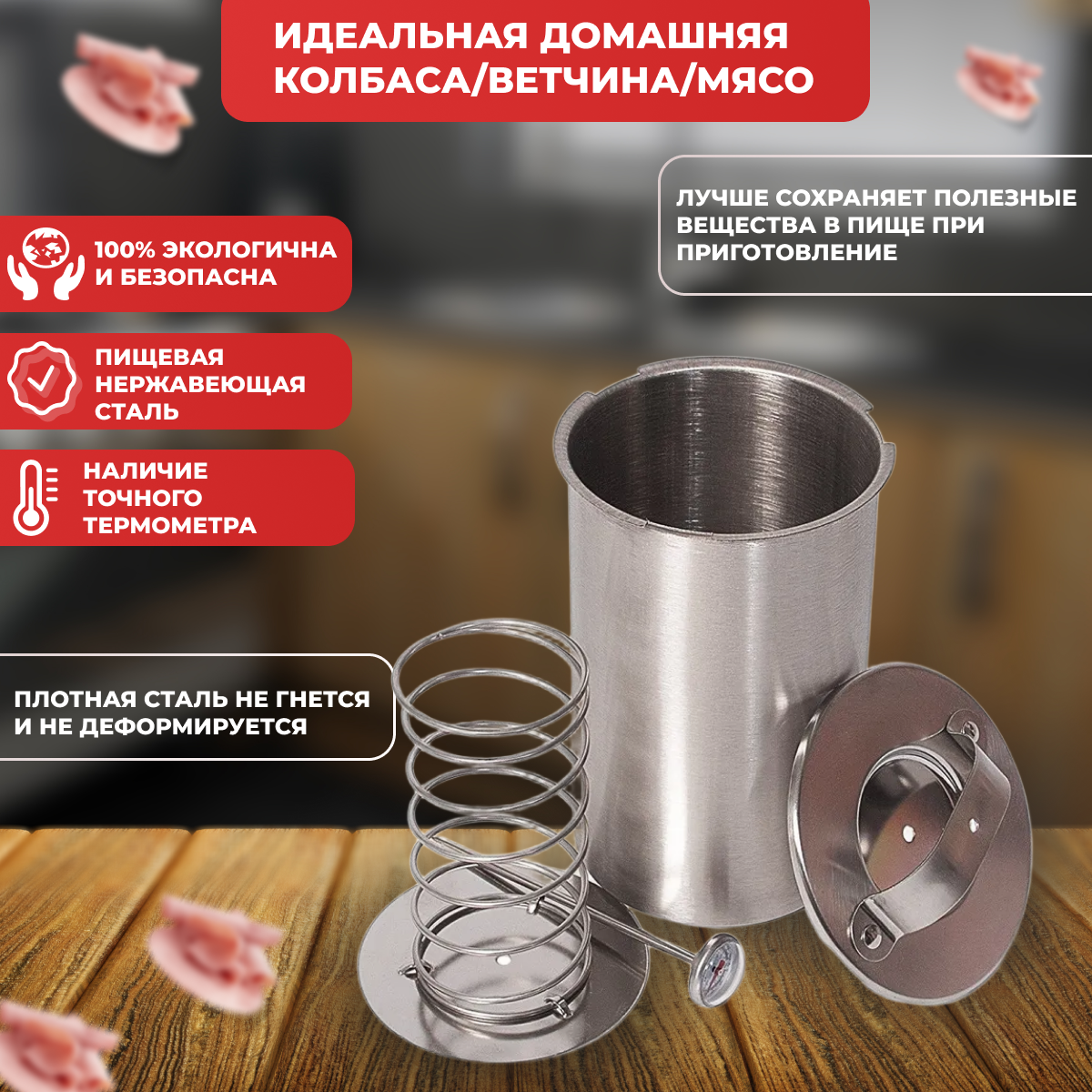 10 цен на Ветчинница с термометром 1,5л из нержавеющей стали.