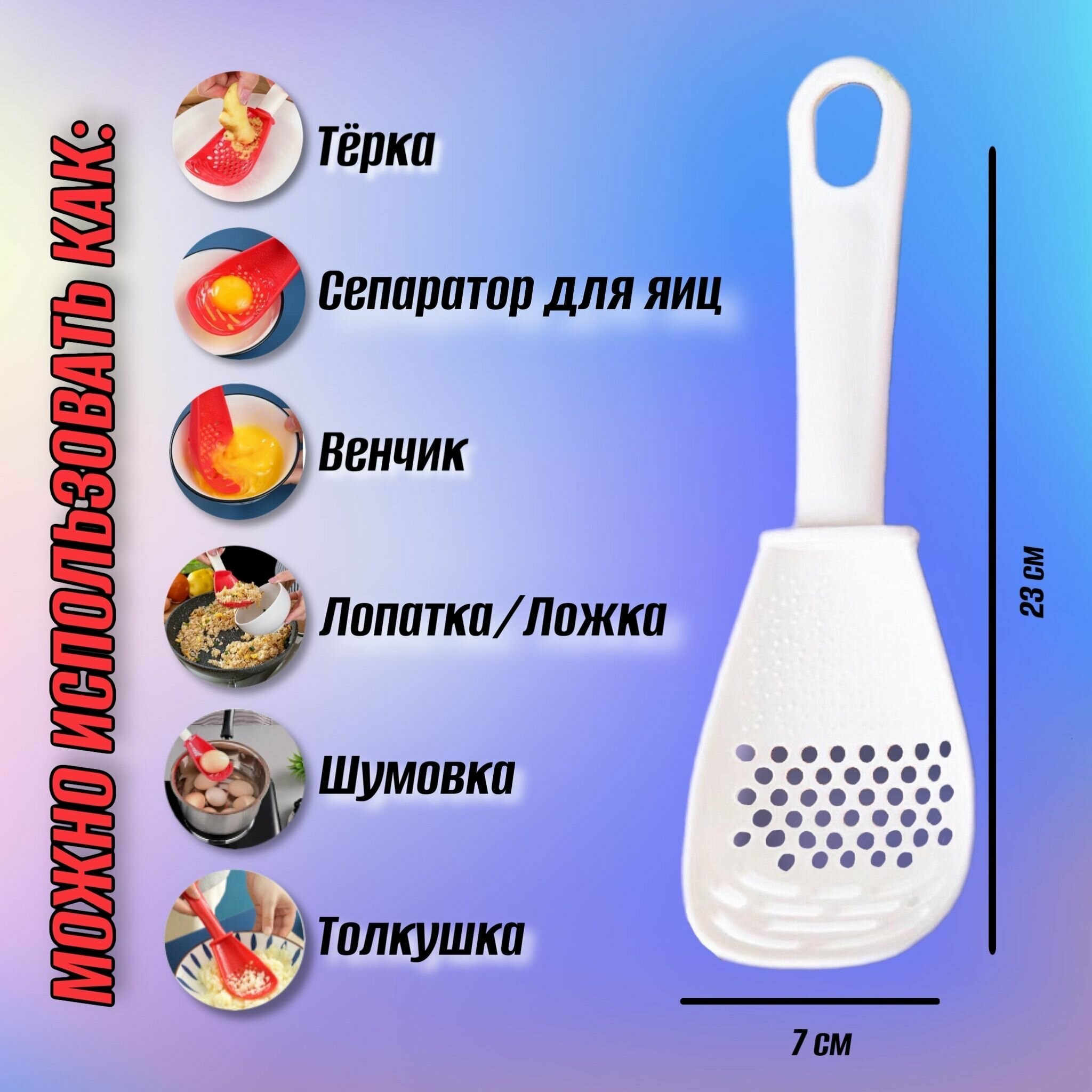 Ложка кулинарная / Лопатка кулинарная / Шумовка ложка / Толкушка / Терка / Многофункциональная ложка ( белая ) информация: