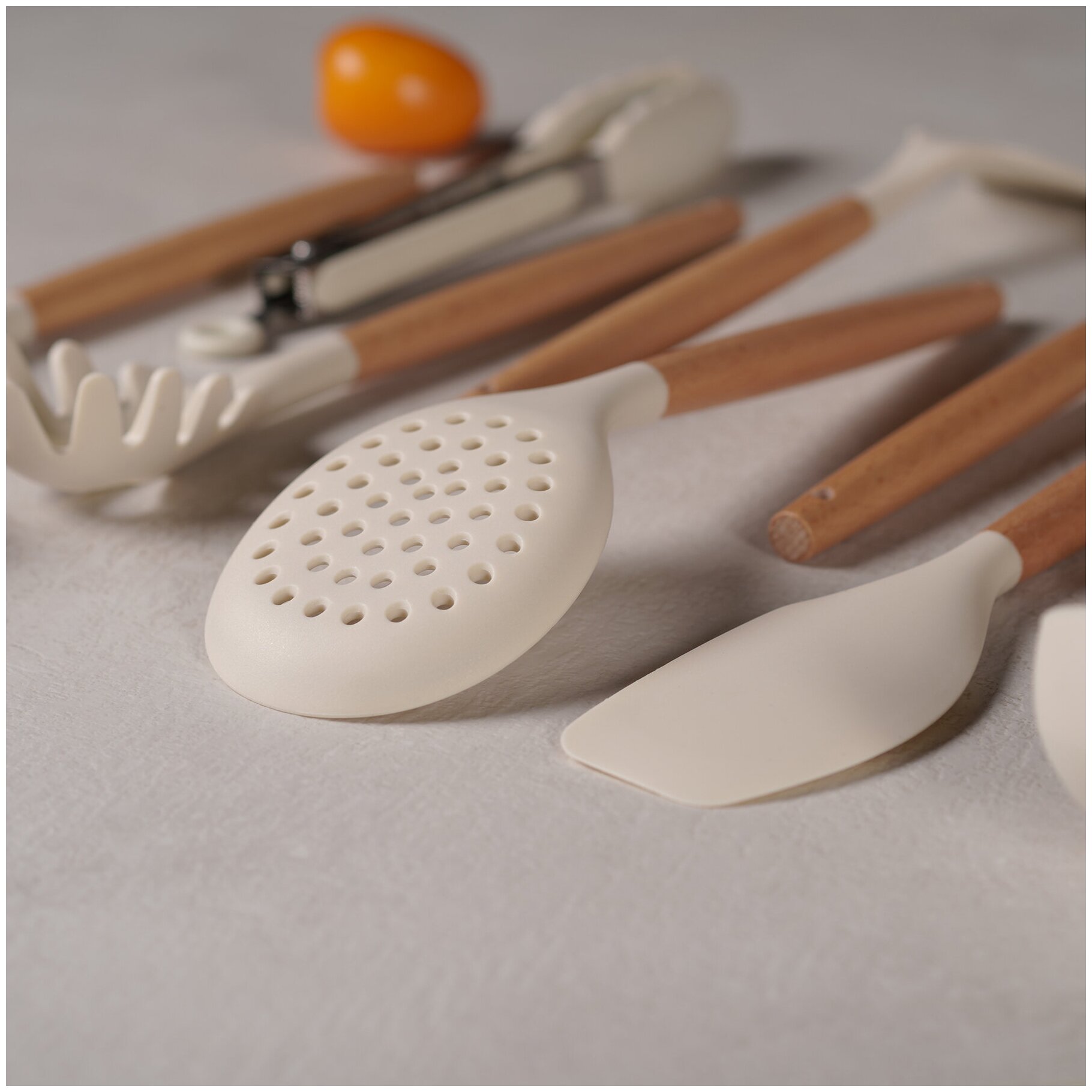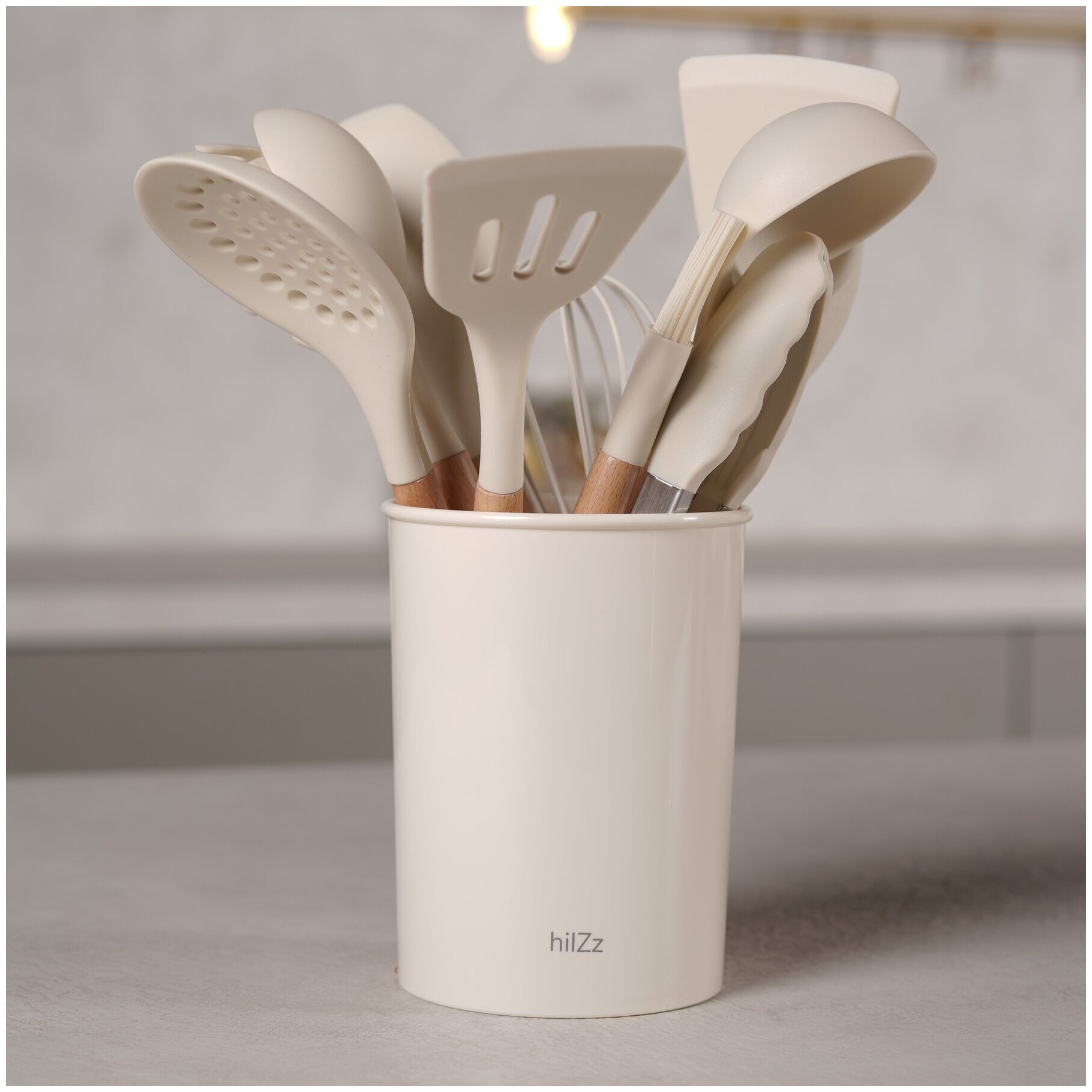 10 цен на Набор кухонных принадлежностей силиконовый с подставкой, молочный