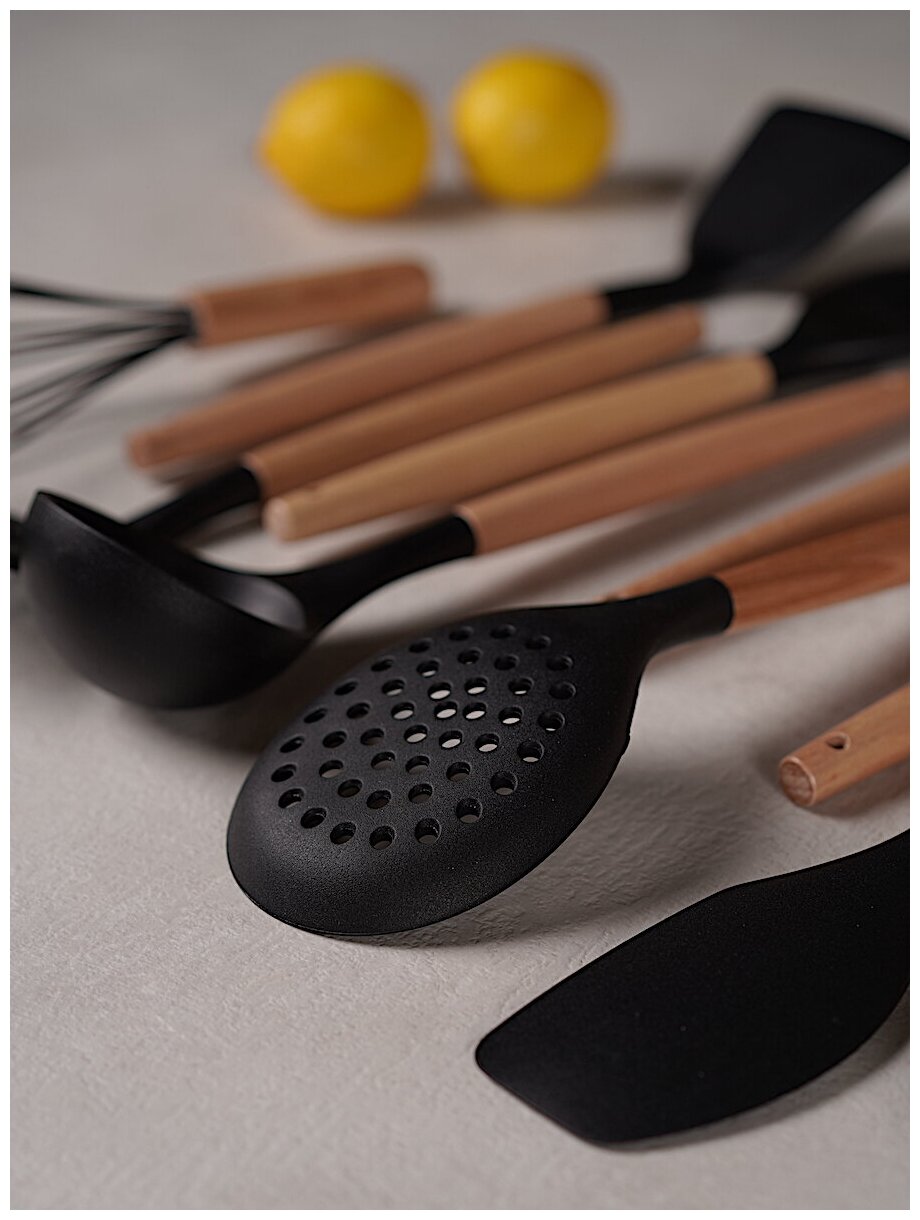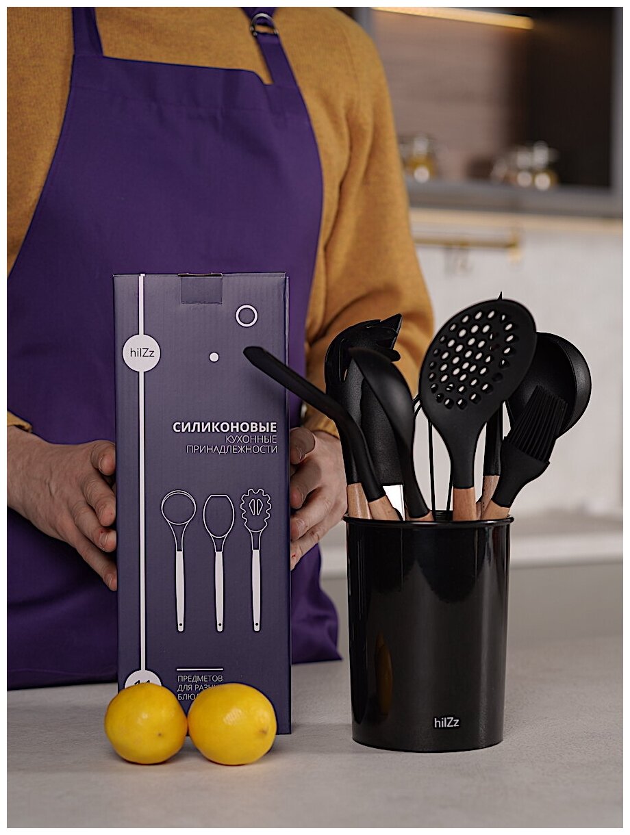 10 цен на Набор кухонных принадлежностей силиконовый с подставкой, черный