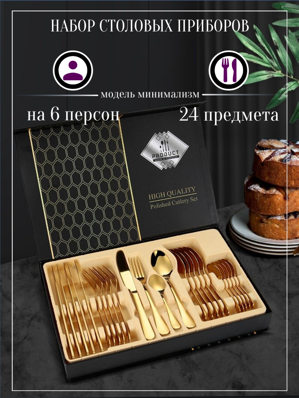 Набор столовых приборов из 24 предметов на 6 персон золото информация: