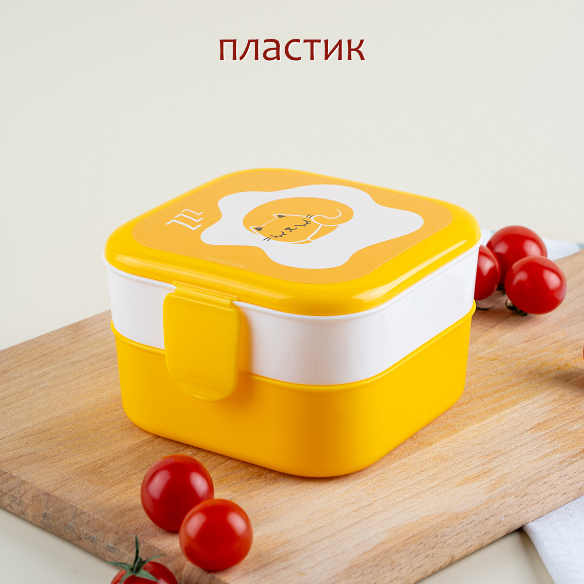 10 цен на Контейнер для еды, ланч - бокс двухуровневый «Котик», отсеки по 0,4 л