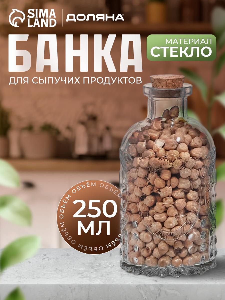 10 цен на Банка для сыпучих продуктов с пробковой крышкой "Парфе. Династия" 250 мл, 6,5х13 см 5864344