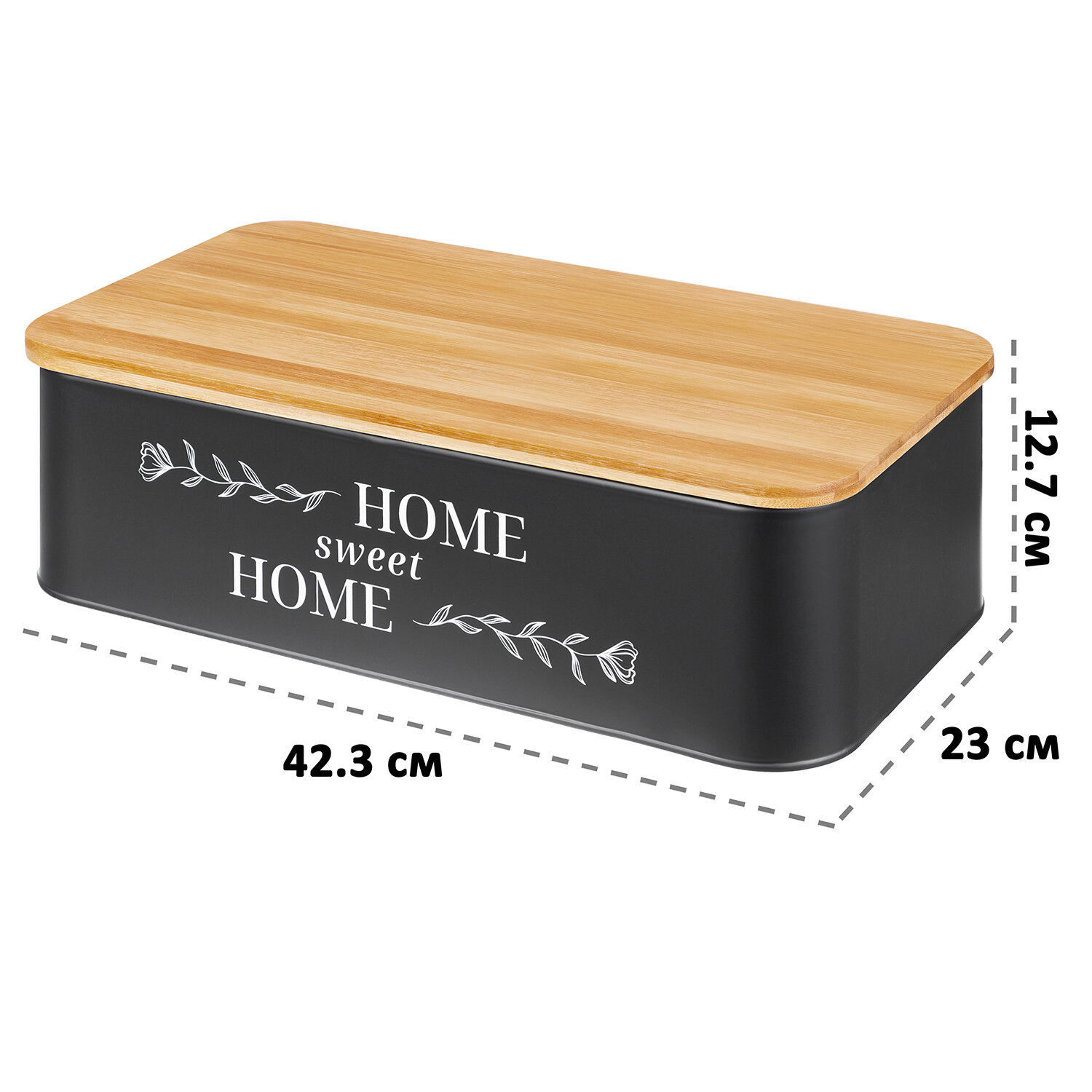 Контейнер для хранения / хлебница / короб металлический 42,3х23х12,7 см Elan Gallery Черный с бамбуковой крышкой информация: