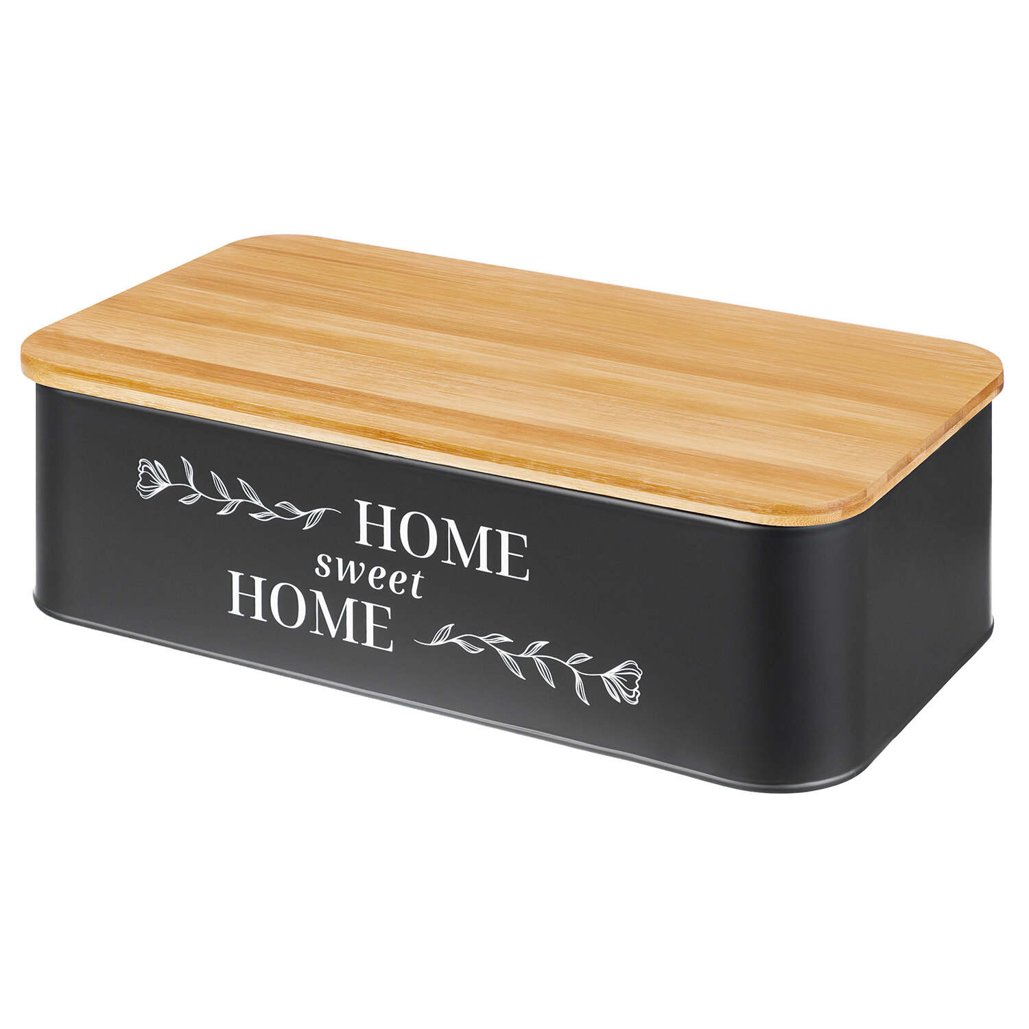 Отзывы на Контейнер для хранения / хлебница / короб металлический 42,3х23х12,7 см Elan Gallery Черный с бамбуковой крышкой