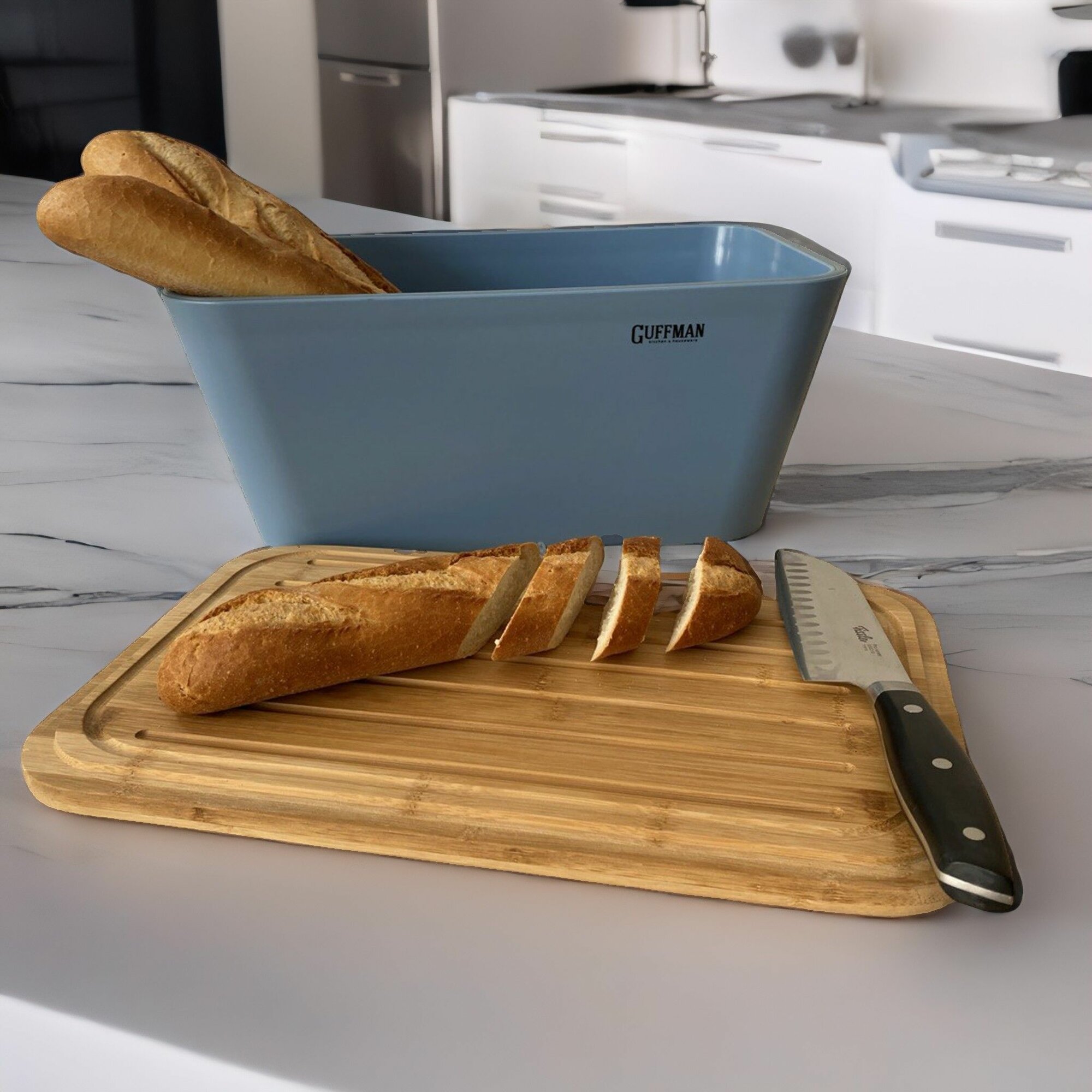Хлебница с крышкой из бамбука - разделочной доской Guffman , серо-голубая информация: