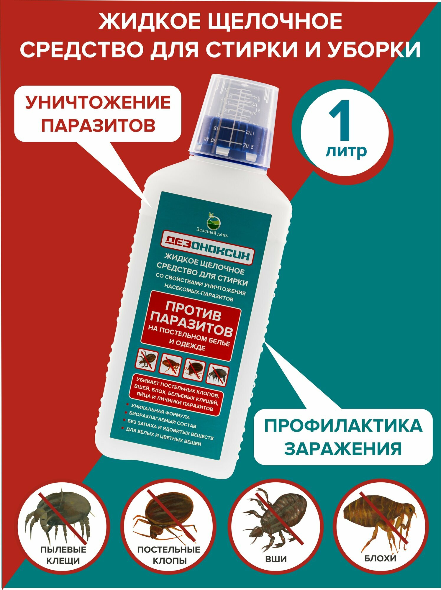 | Подробная комплектация | Жидкое щелочное средство для стирки от насекомых паразитов на постельном белье и одежде 1 литр + мерный стаканчик |