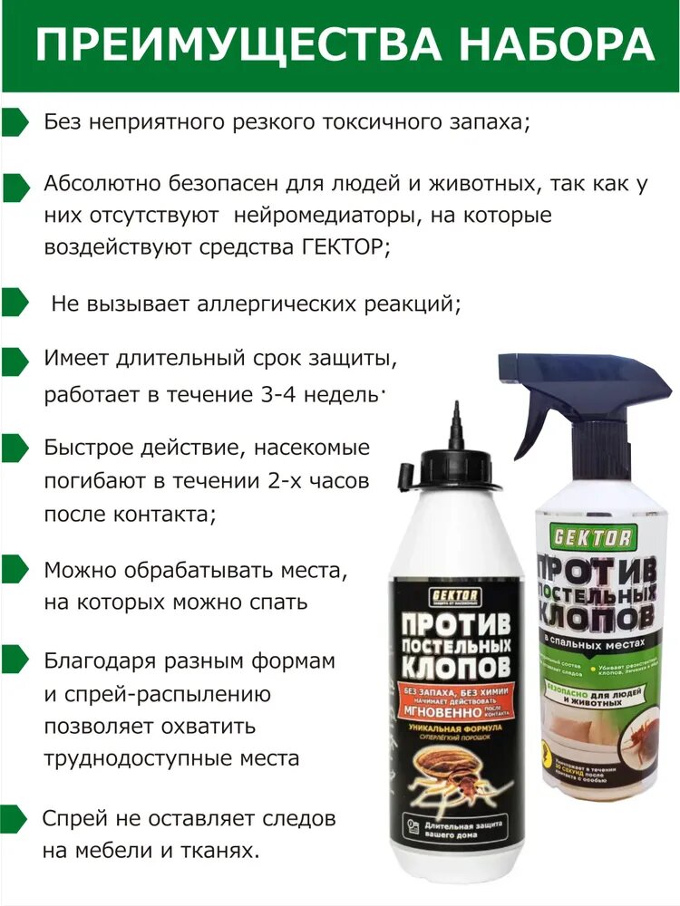 10 цен на Набор Gektor (Гектор) против клопов: порошок 100 г (500 мл) + ЭКО спрей 500 мл без едкого запаха
