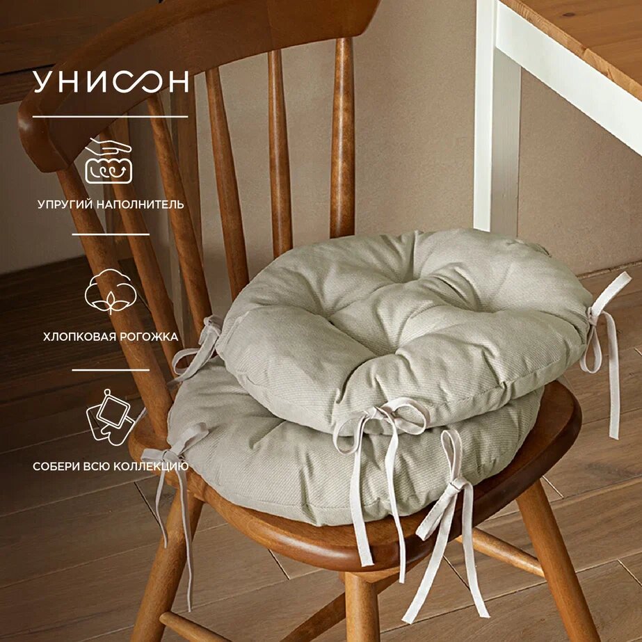 Отзывы на Комплект подушек на стул с тафтингом круглых d40 (2 шт) "Унисон" рис 30004-15 Basic бежевый