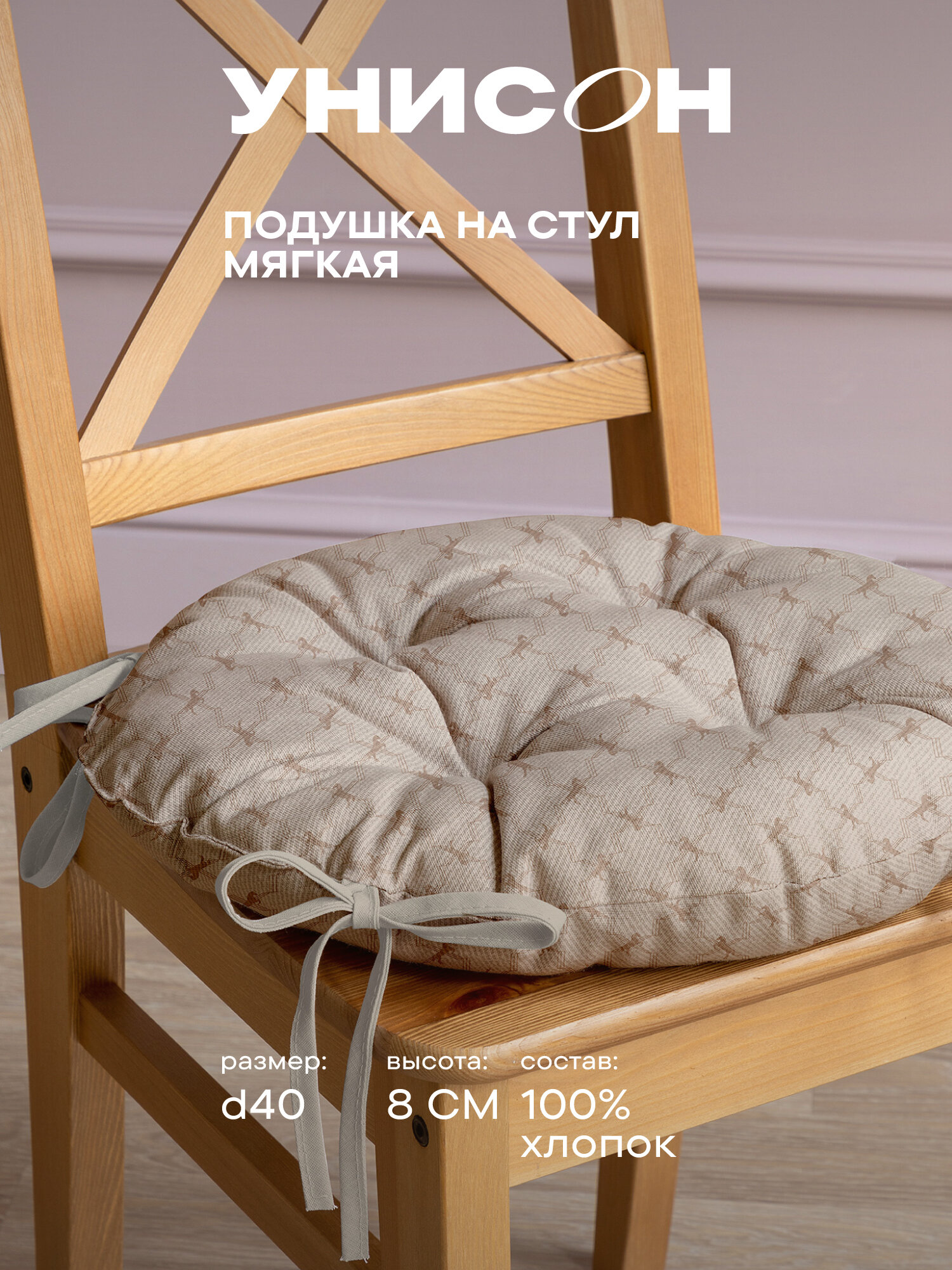 Подушка на стул с тафтингом круглая d40 "Унисон" рис 30004-15 Basic бежевый 353 ₽