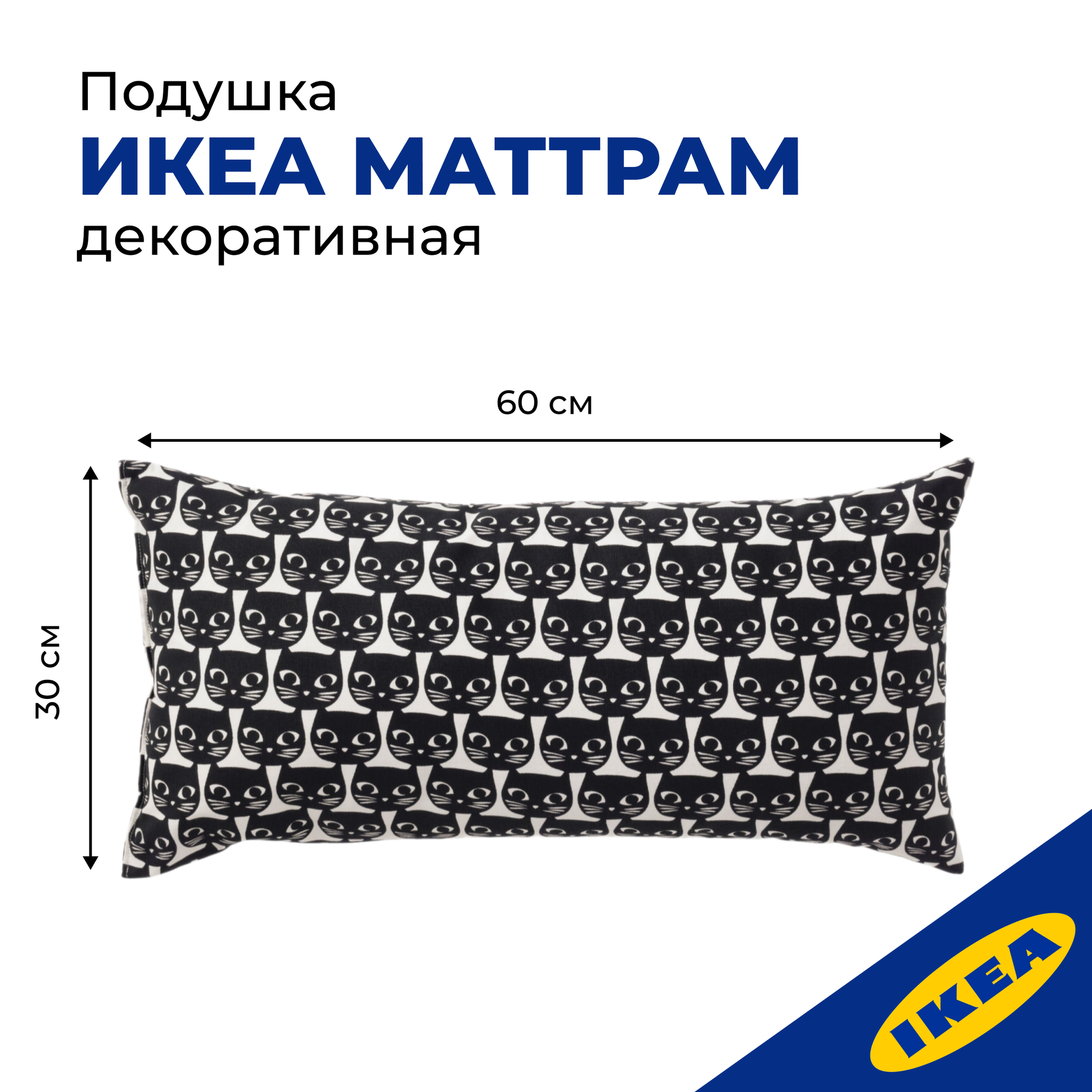 10 цен на Декоративная подушка икеа маттрам, , 30x60 см. Подушка декоративная на диван. Для интерьера и декора
