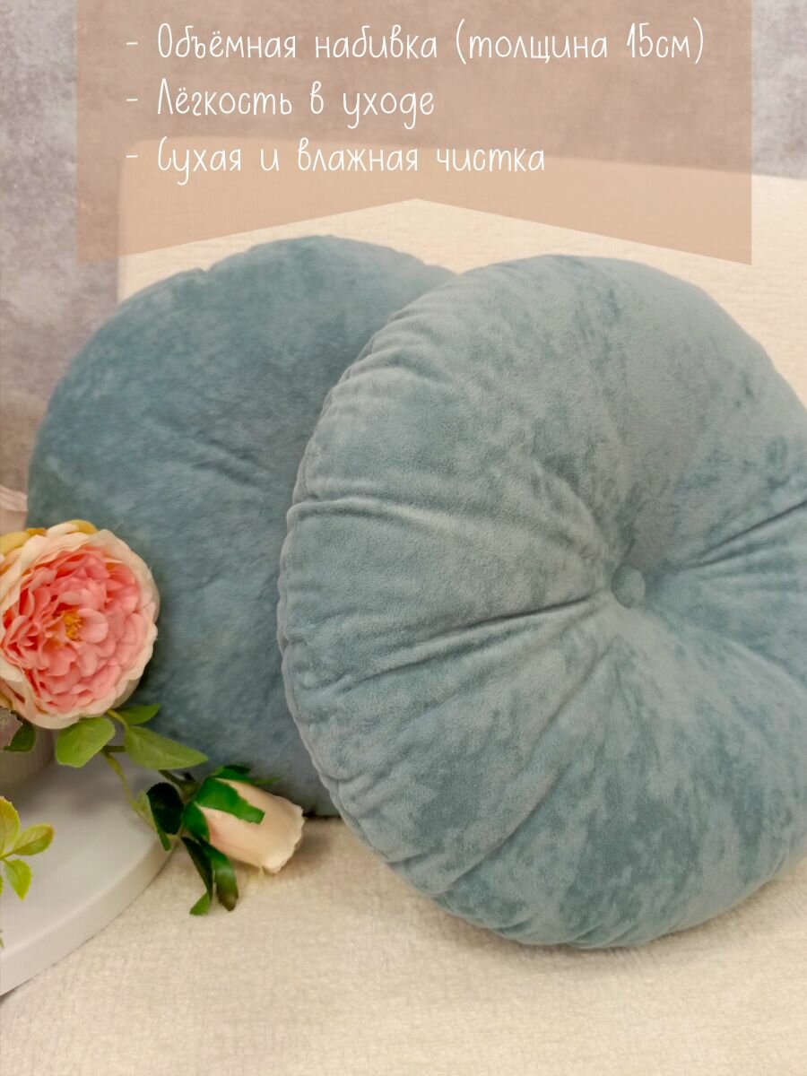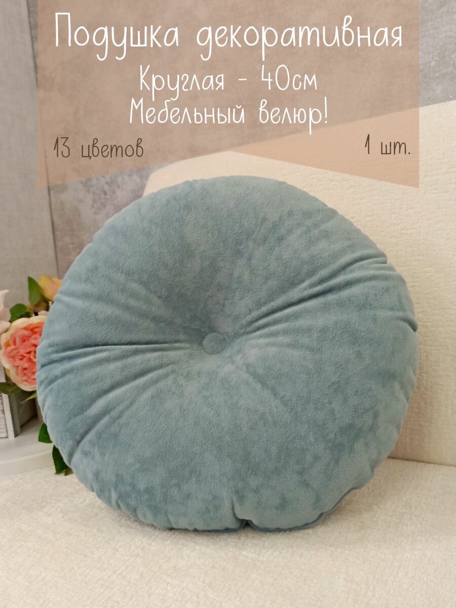 Подушка круглая 40х40 см голубая информация: