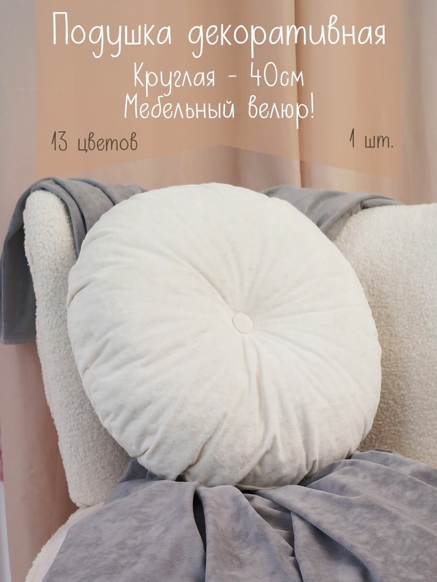 Подушка декоративная круглая белая, 40x40 780 ₽