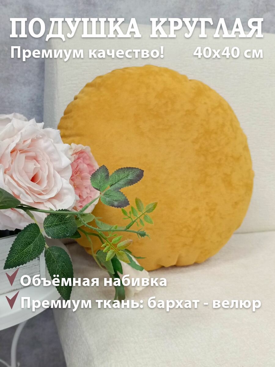 Подушка круглая 40х40 см желтая информация: