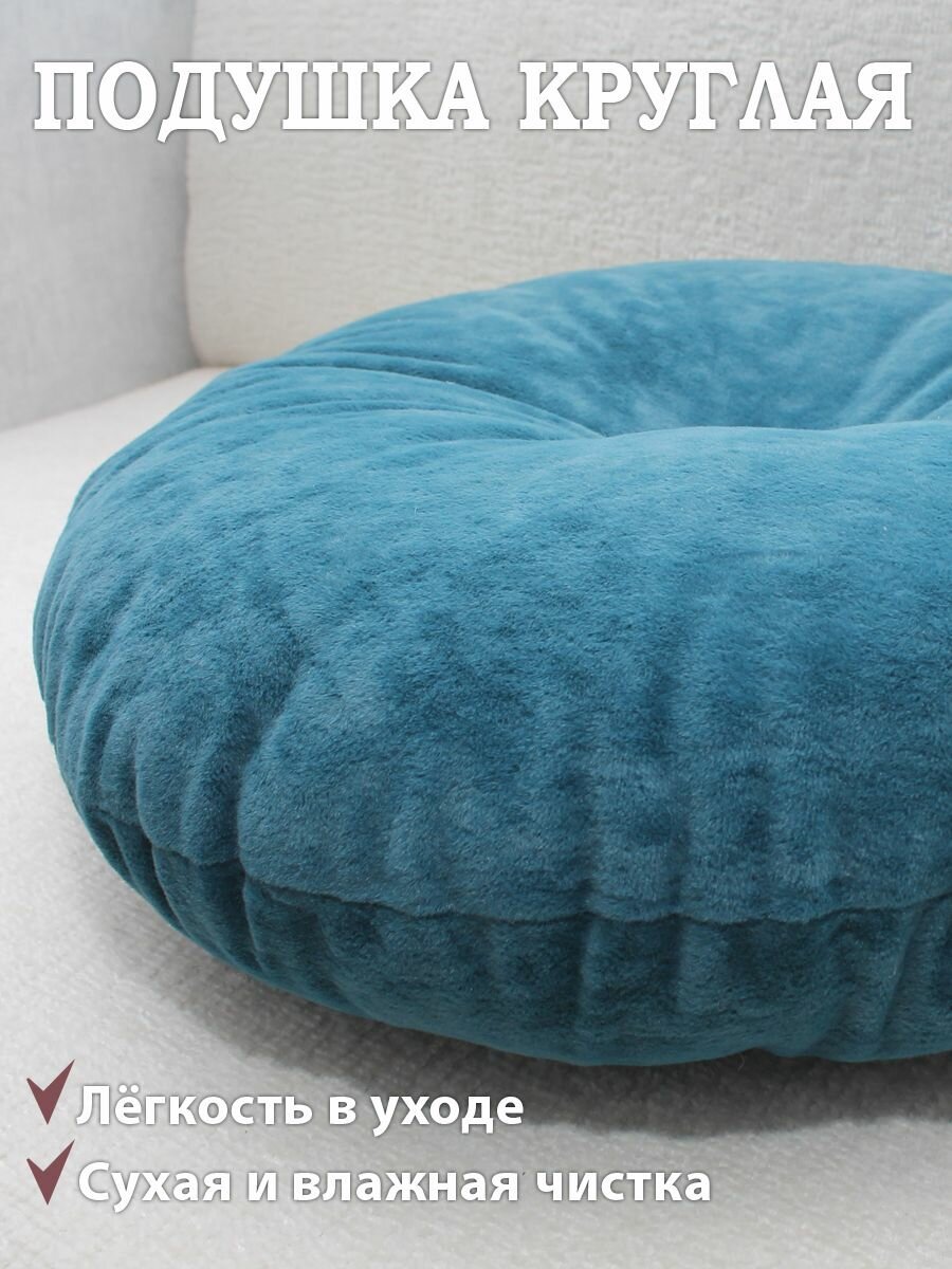 Подушка круглая 40х40 см синяя с пуговицей информация: