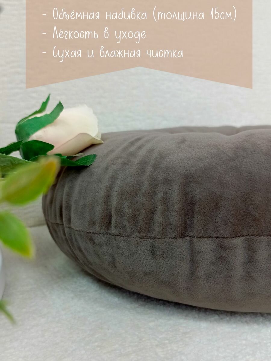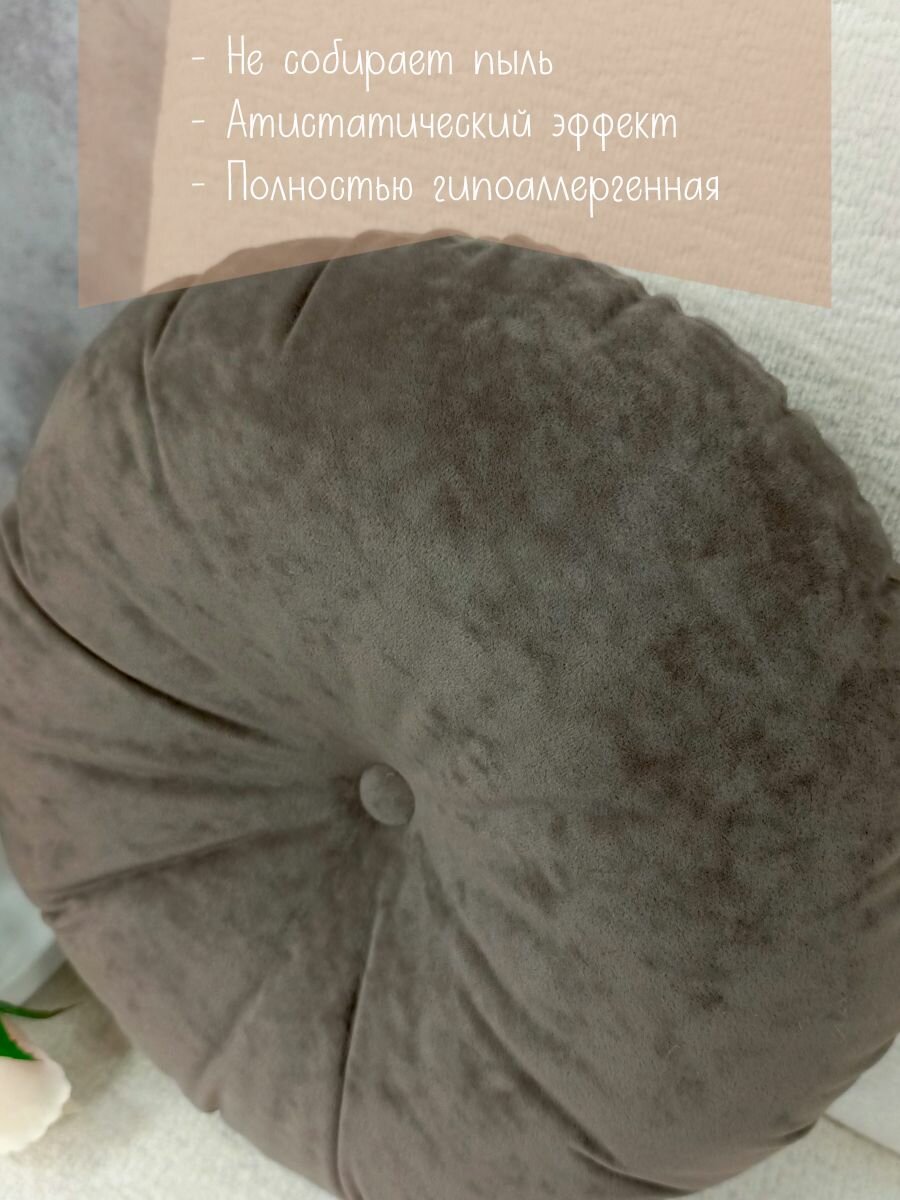 Подушка круглая 40х40 см кофейная с пуговицей информация: