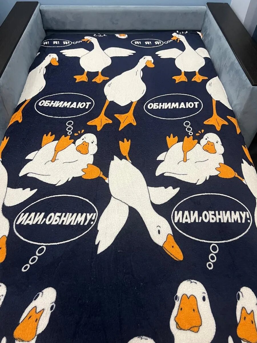 Отзывы на Плед 180х200 пушистый на кровать и диван Гусь Обнимусь синий / покрывало на кровать