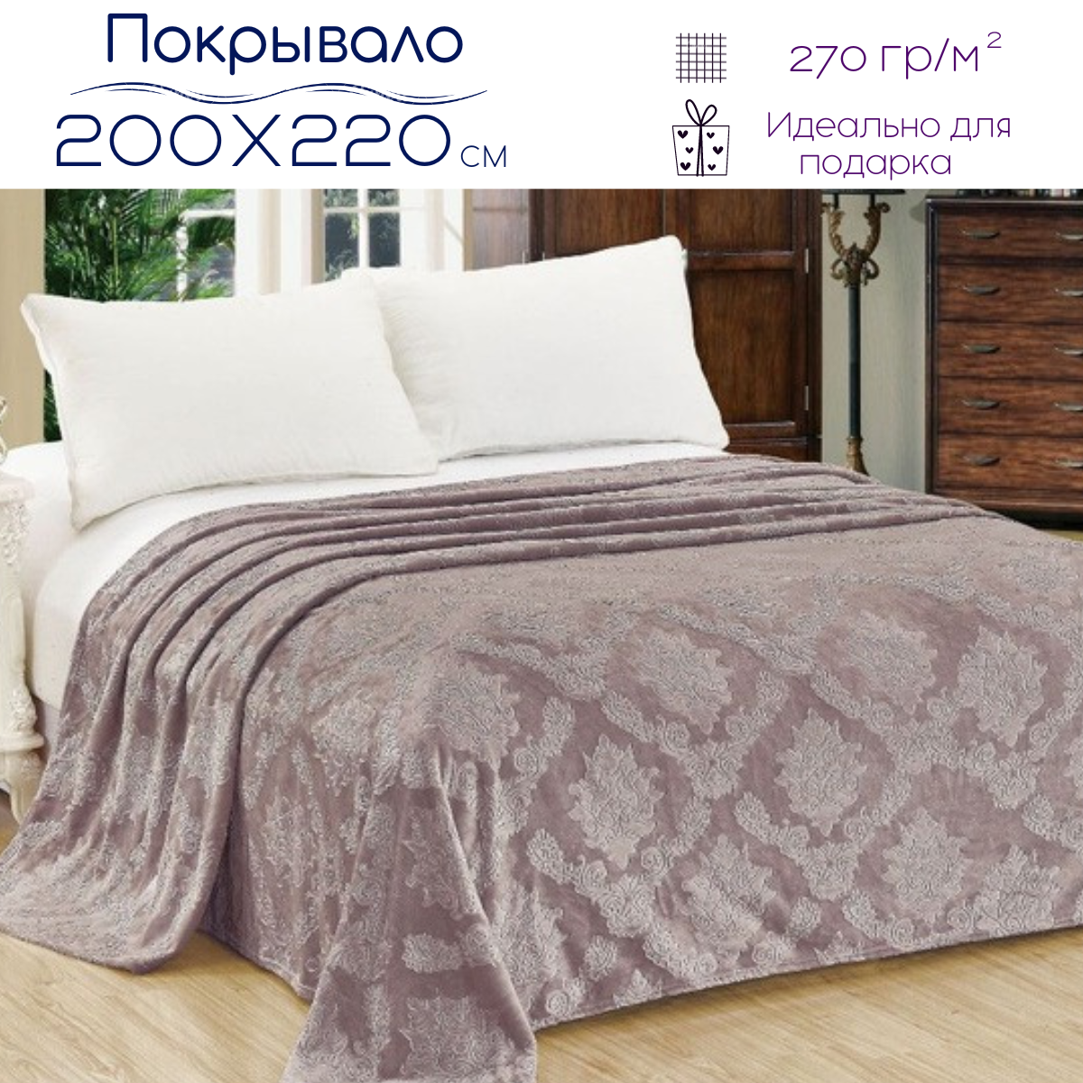 Отзывы на Плед 200х220 см / покрывало на кровать велсофт, какао рис. Парма , ENRIKA