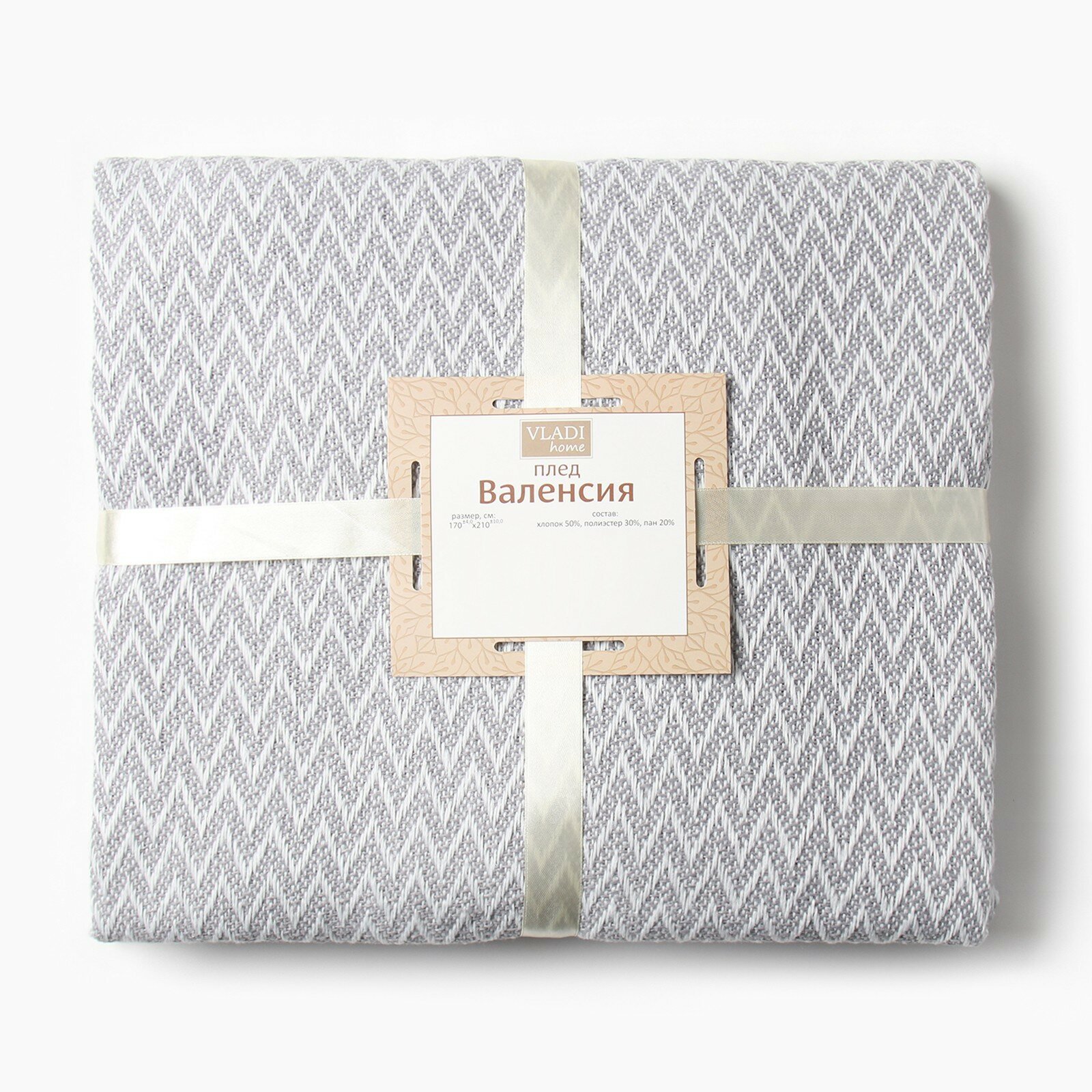 Влади Плед Пикник 140х200см, цвет белый/бежевый/серый, хлопок 20%, пан 40%, полиэстер 40%