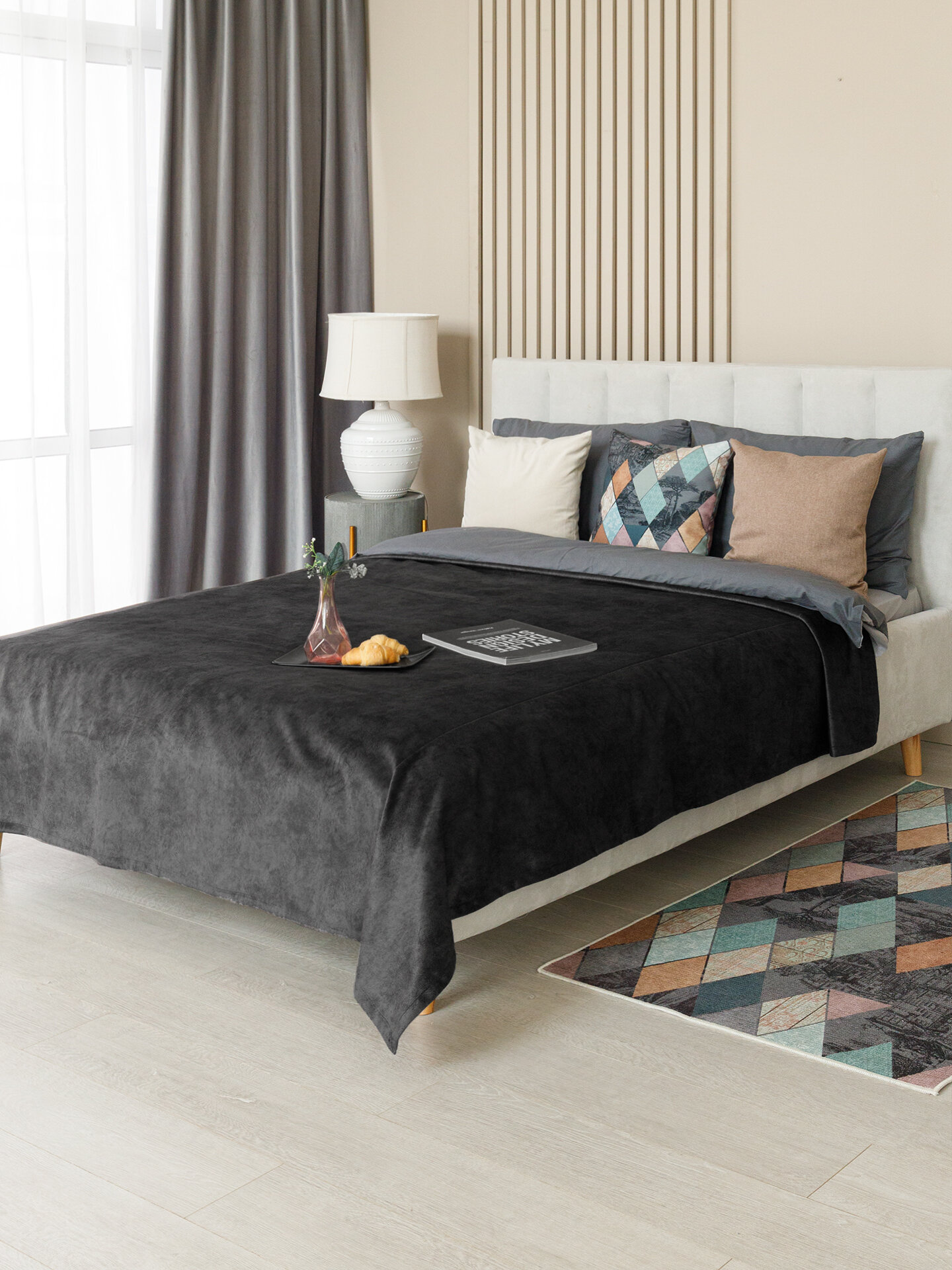 Покрывало на кровать 240х260 см с наволочками велюр MAXI ADRIA SMOKE
