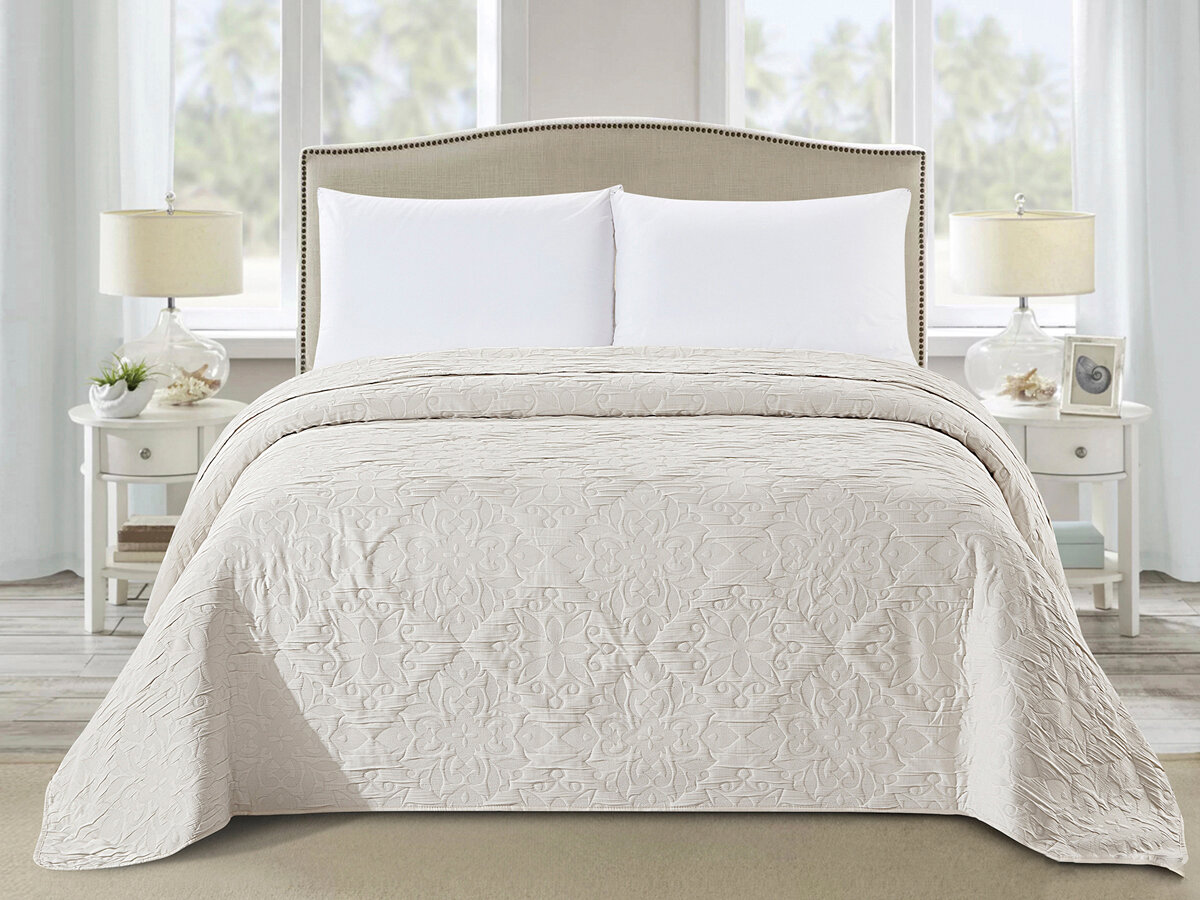 Покрывало с жаккардом 005-CN (240х260 см) Caroline Cleo (бежевый), 240x260