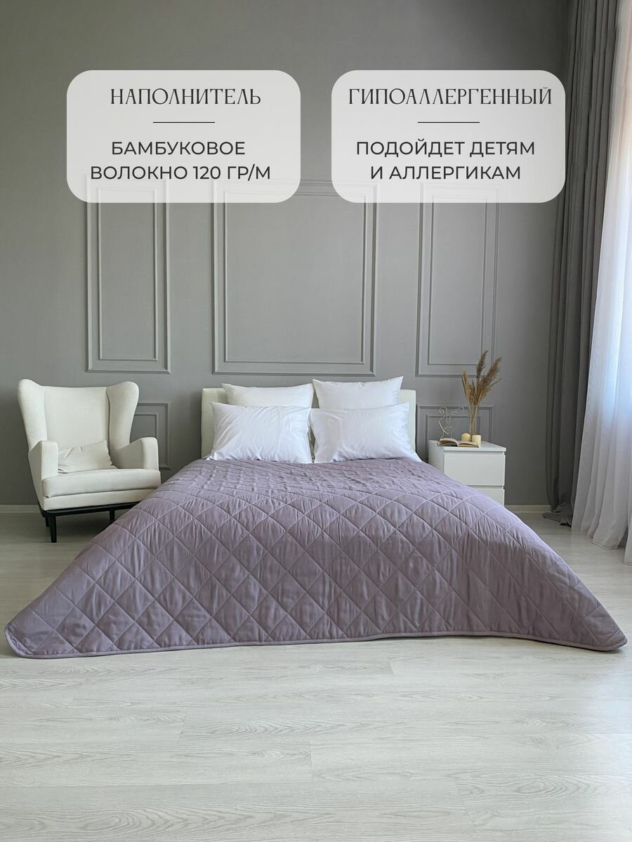 Отзывы на Покрывало на кровать и диван 210х240 см стеганое, серо-фиолетовое, Ушки Подушки