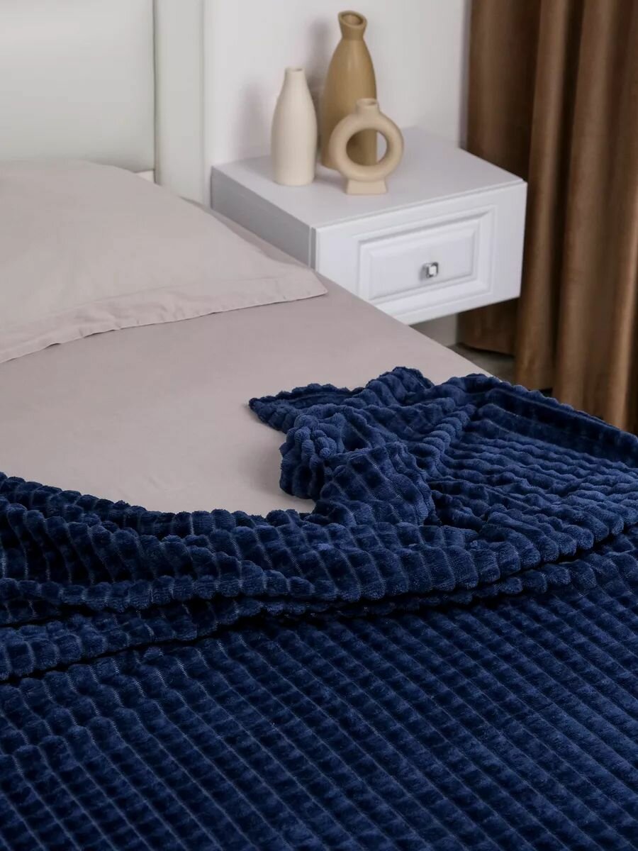Плед темно синий плюшевый в кубик евро 200х220 см информация: