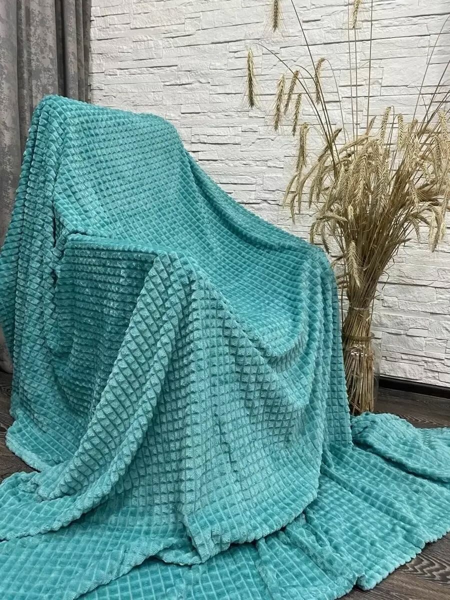 10 цен на Плед бирюзовый плюшевый в кубик евро 200х220 см