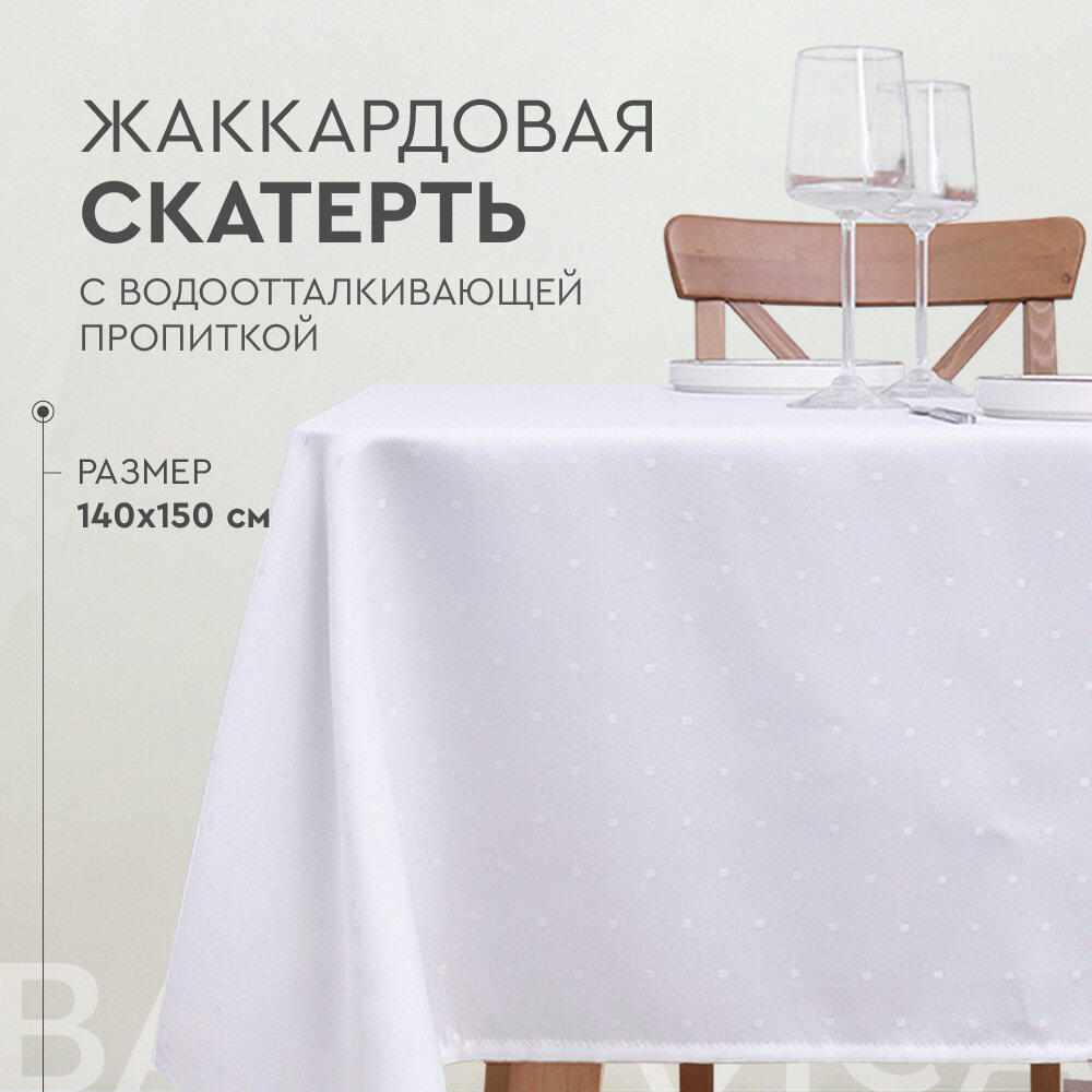Скатерть кухонная "Василиса" 140х150 см, Dots, Белая информация: