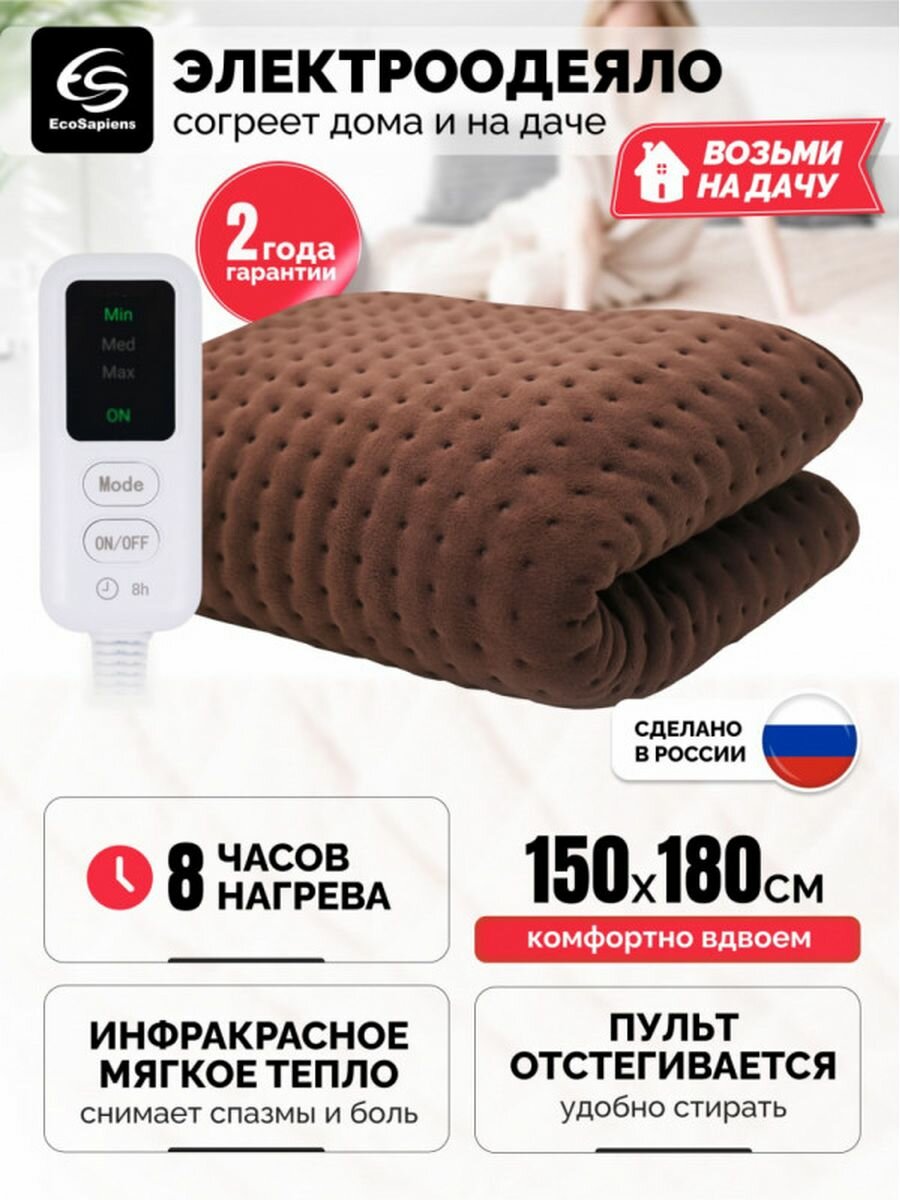 Электроодеяло EcoSapiens Carbonix, электрическое одеяло 150 х120 см