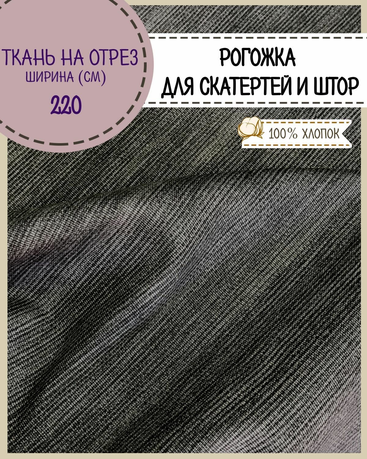 ткань для скатерти/штор Рогожка "Лён" темно-серый, ш-220 см, на отрез, цена за пог. Метр информация: