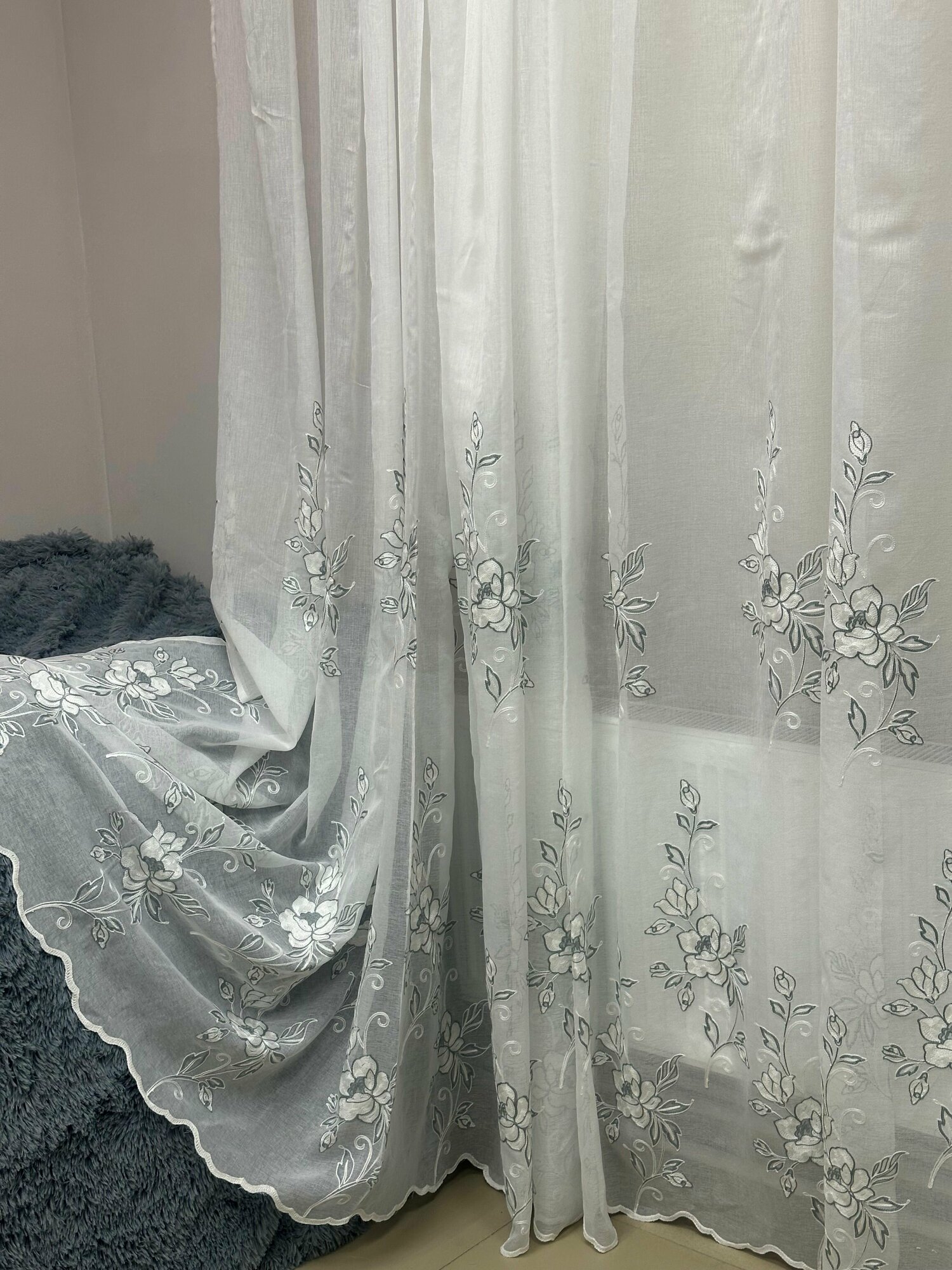 Тюль Батист Лён Вышивка белые Розы 400*240 6 100 ₽