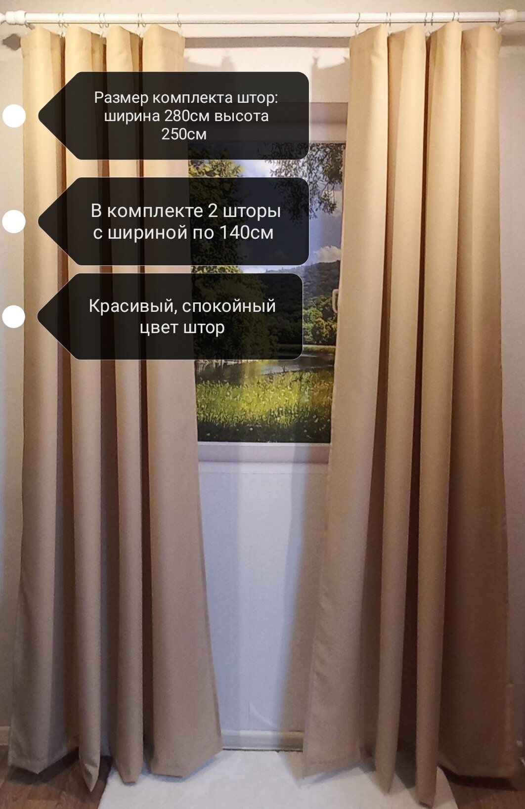 Отзывы на Шторы Gabardin однотонные/Комплект портьер/ Шторы бежевые/ Размер комплекта: ширина 280см высота 250см/ Цвет Бежевый