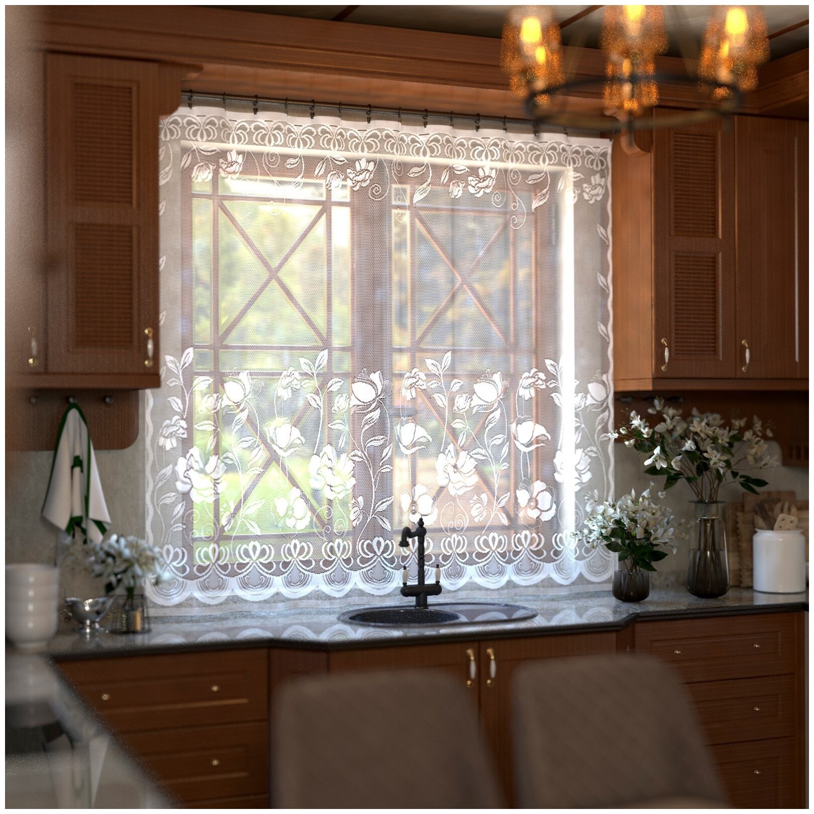 Штора на кухню без шторной ленты, 200х165 см, цвет белый, полиэстер информация: