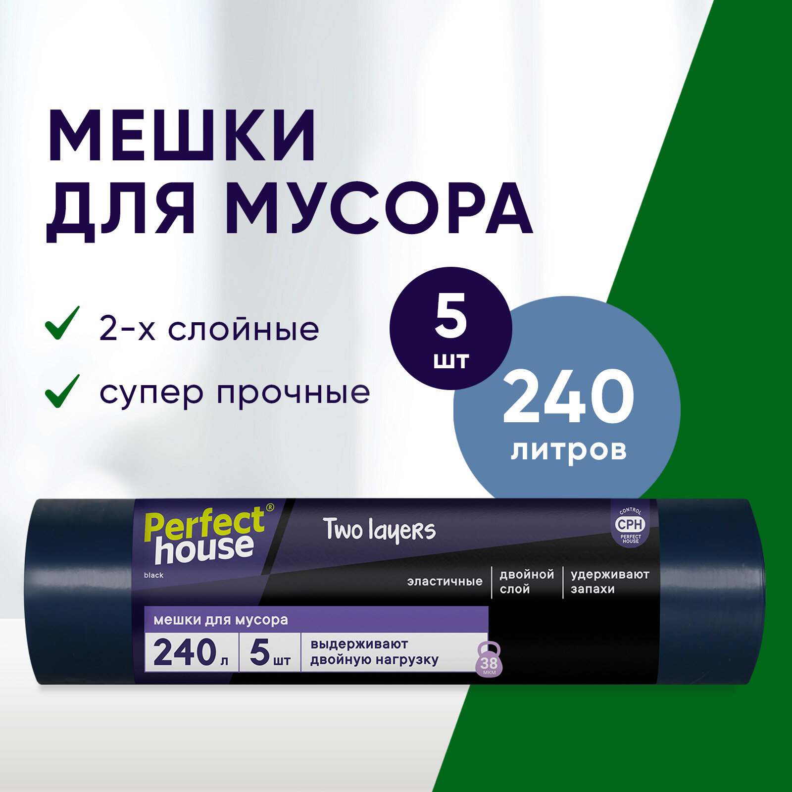 Отзывы на Мешки для мусора Perfect House Two Layers Strong полиэтиленовые, большие для уборки 5 штук, 240 литров