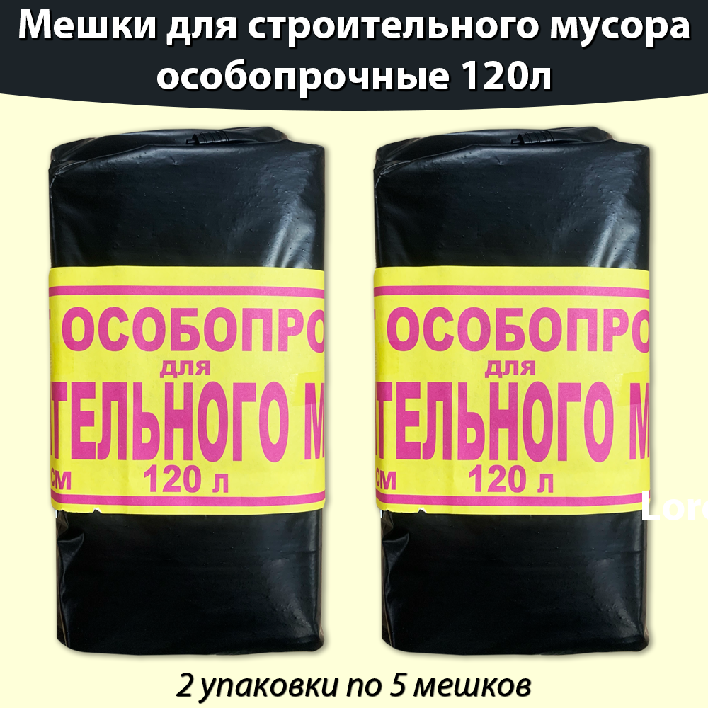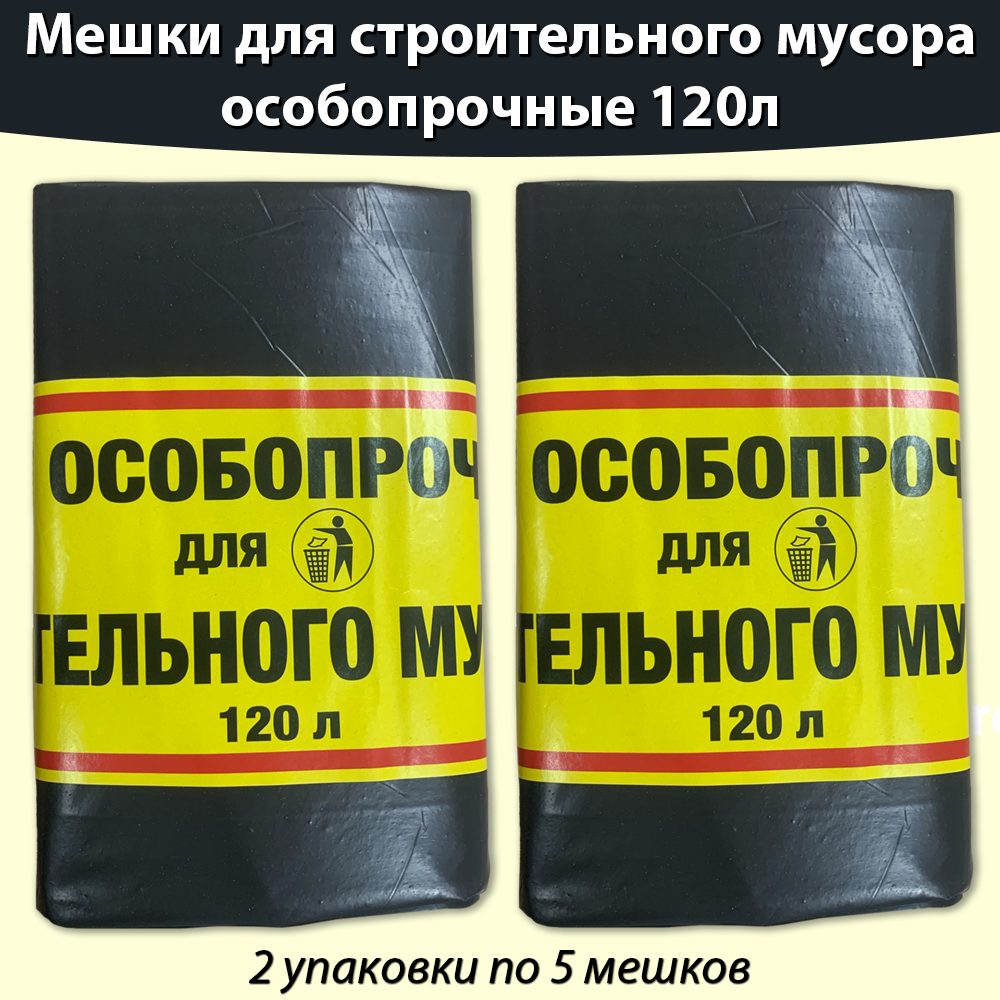 10 цен на Пакет особопрочный для строительного мусора 120л, мусорные мешки -10 штук ( 5штук * 2 упаковки)